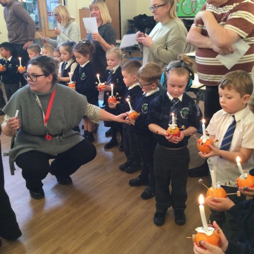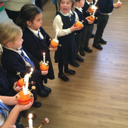 Mrs Owen came into school to teach us about a special Christian tradition at Christmas time. Mrs Owen taught us all about the 'Christingle'. We did this to raise money for the Children's Society
