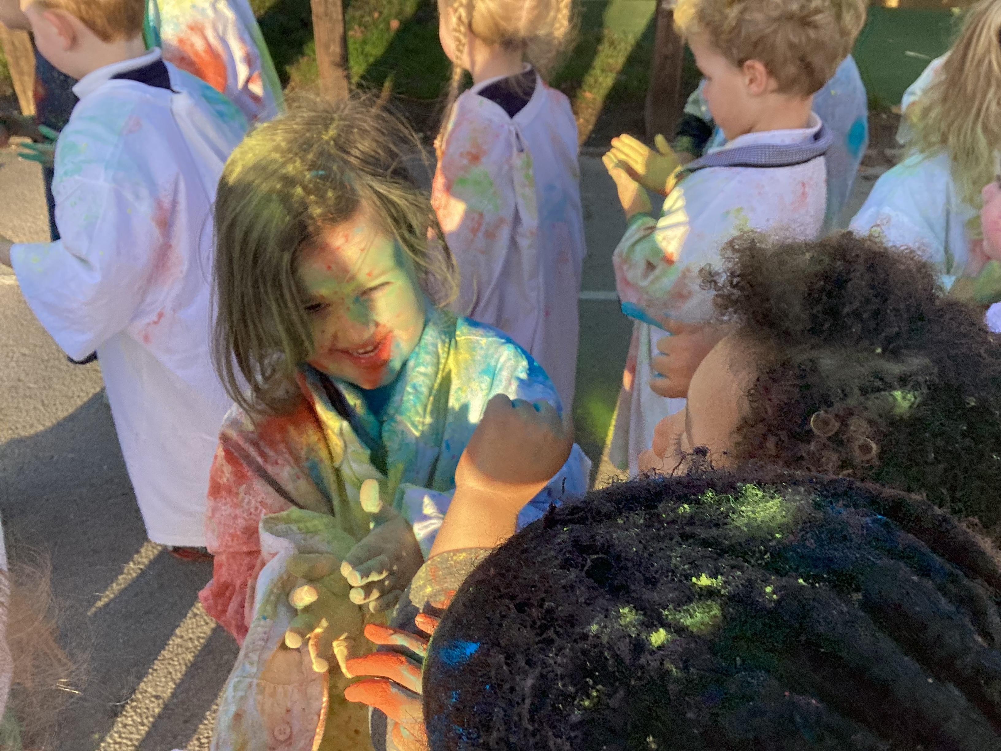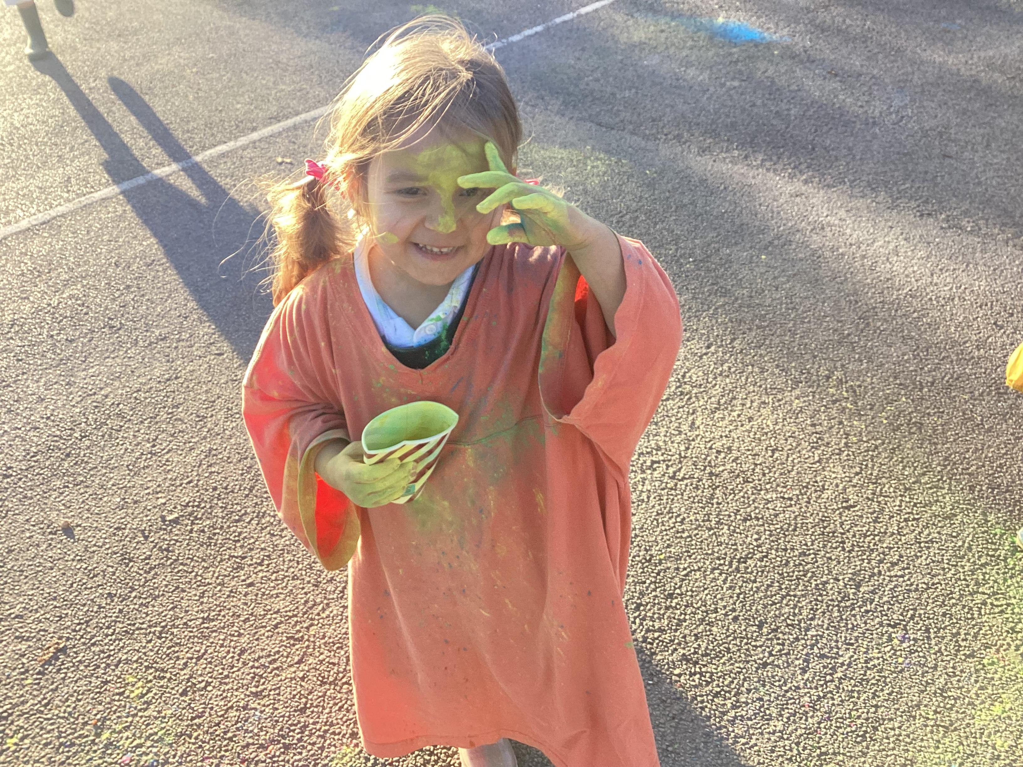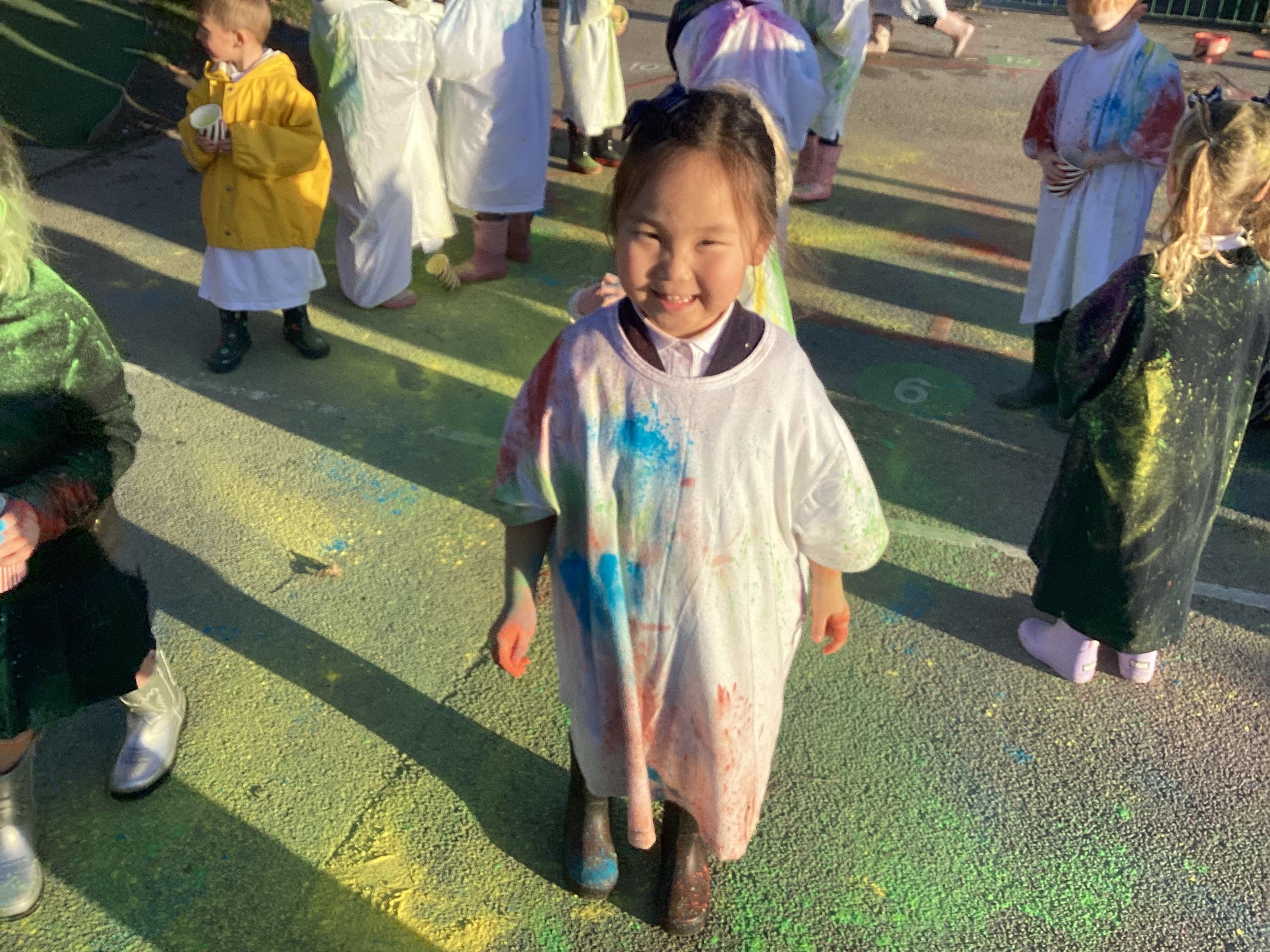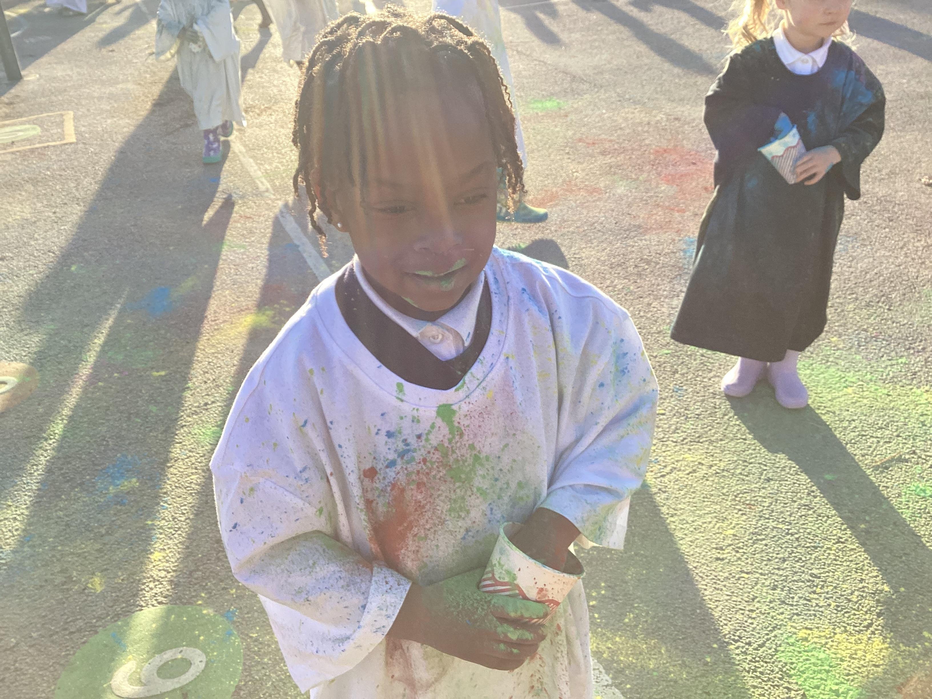 We also learnt about Holi which is the festival of colour. We celebrated this by throwing powder paint making each other very colourful.