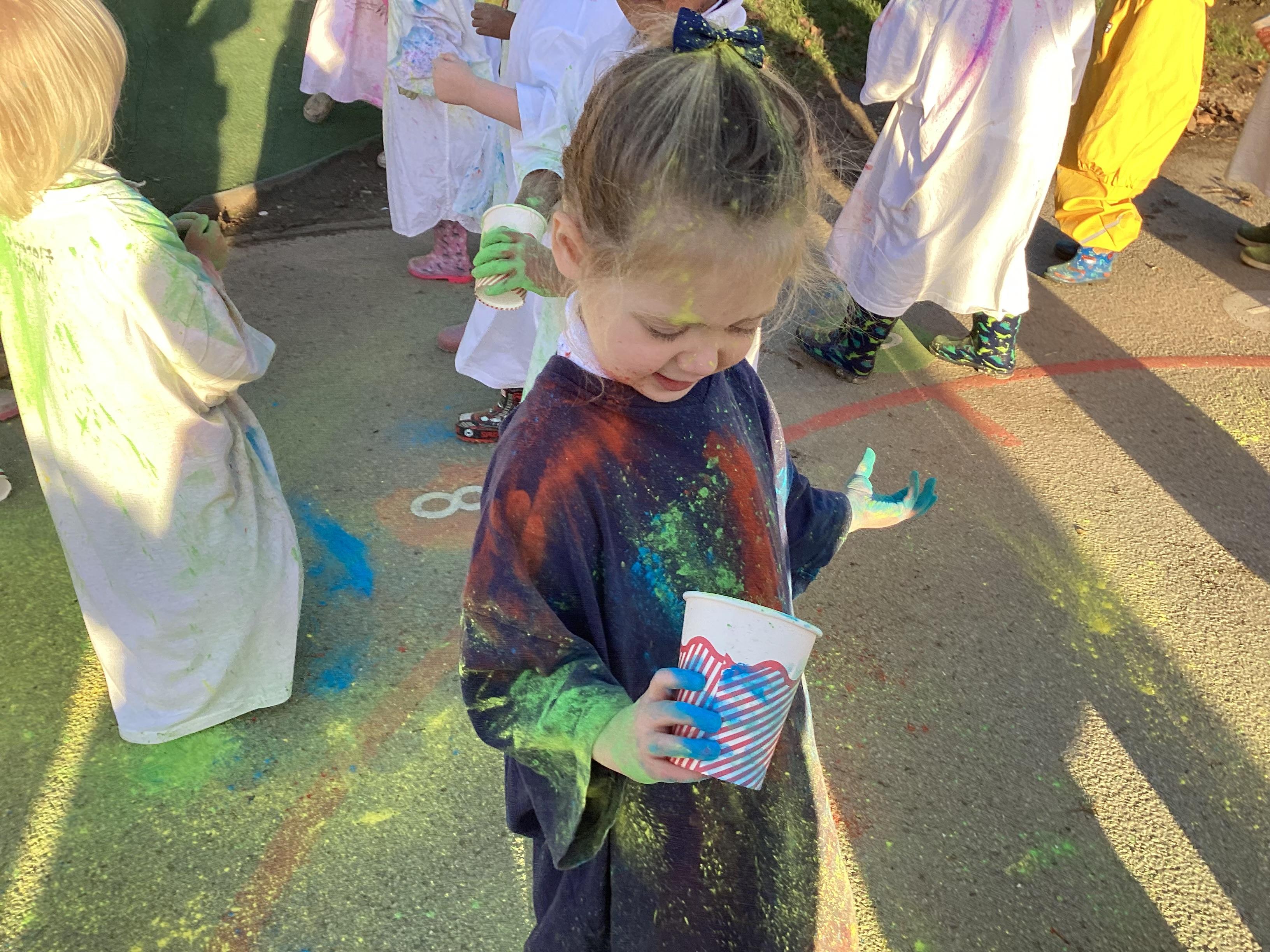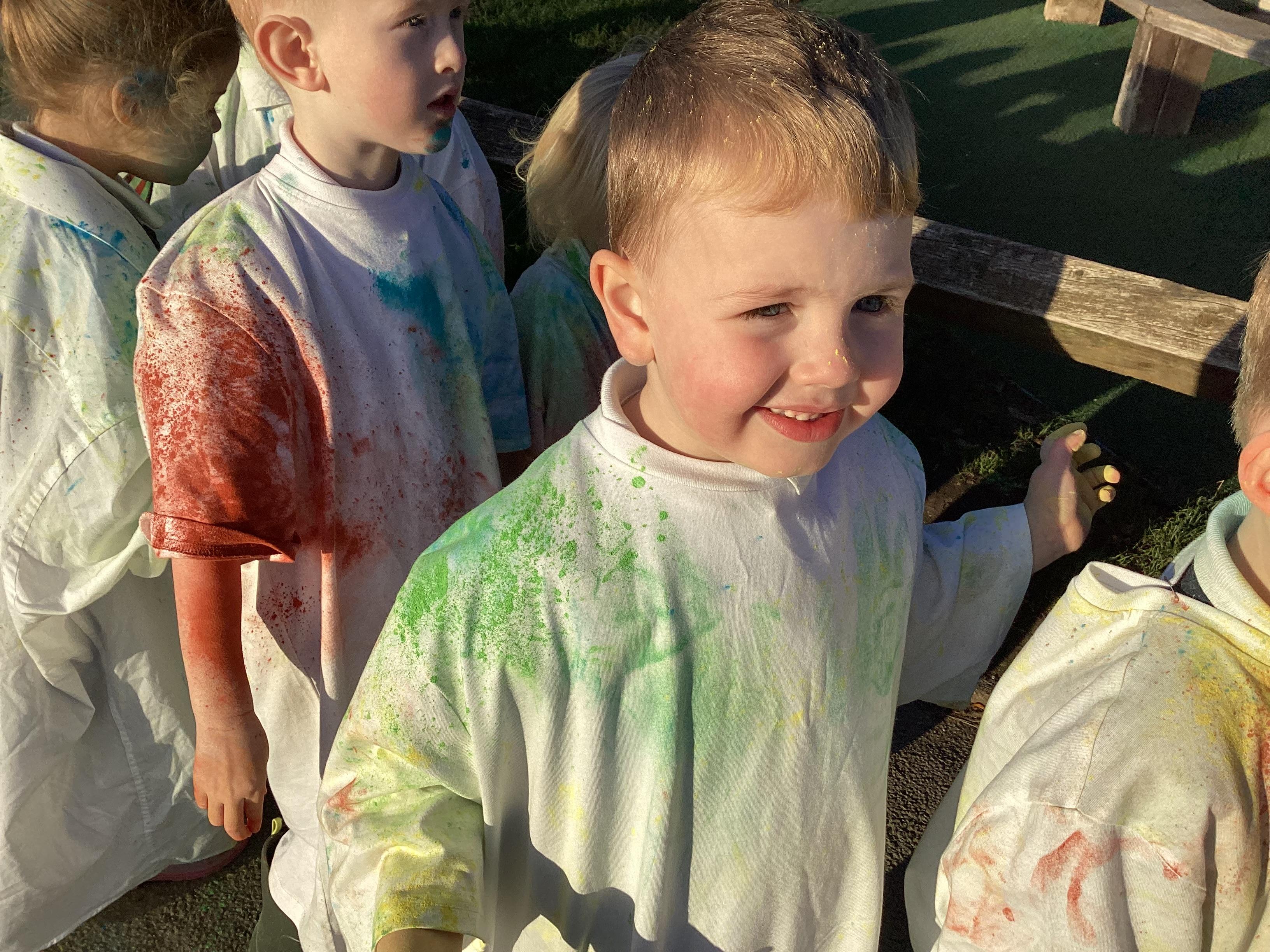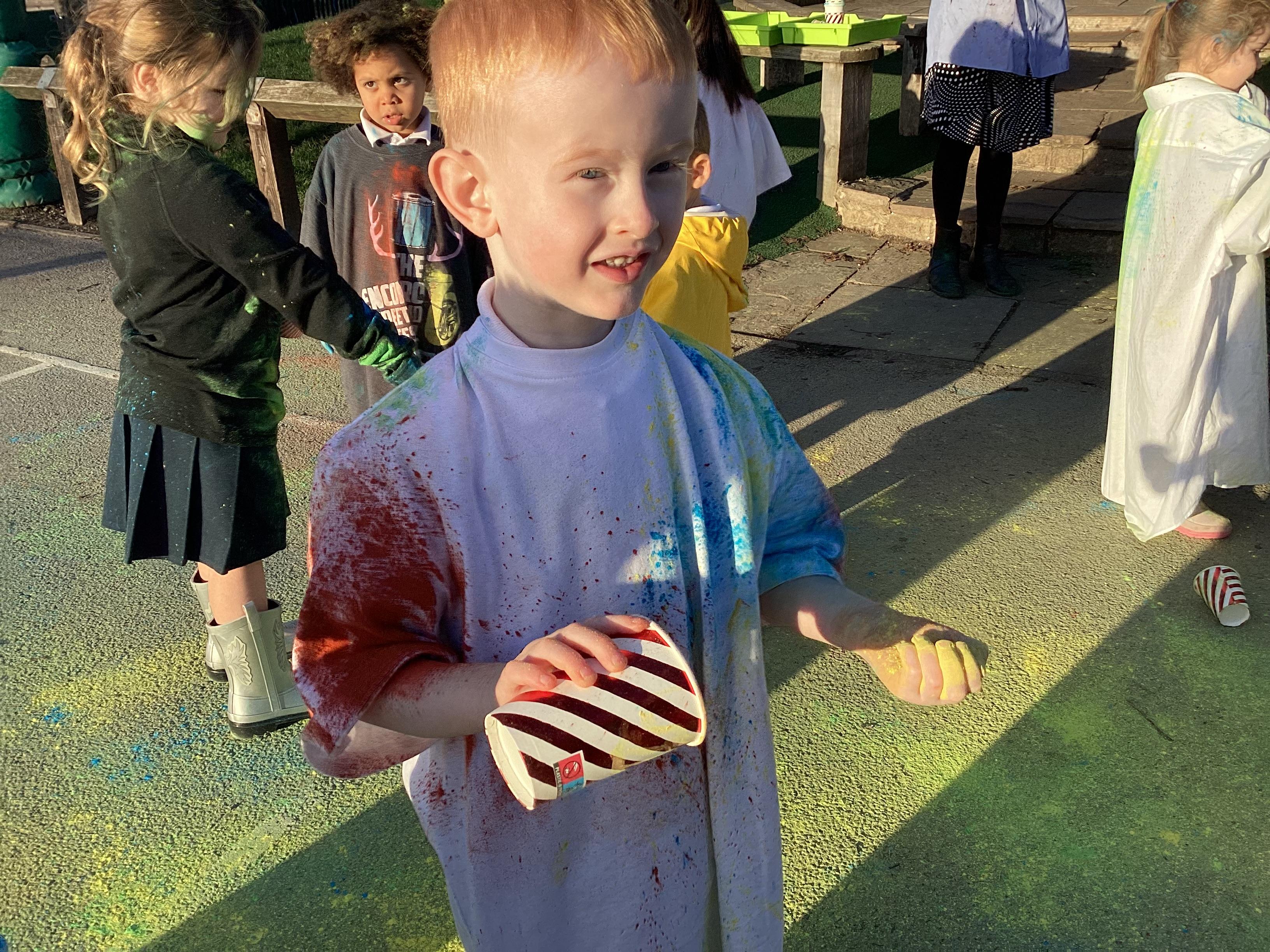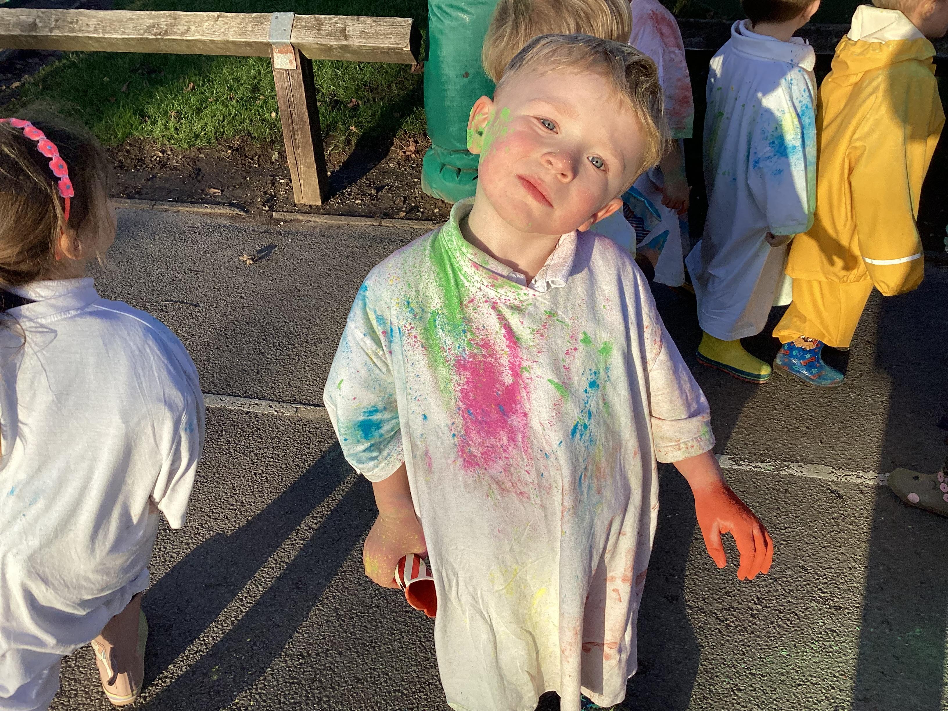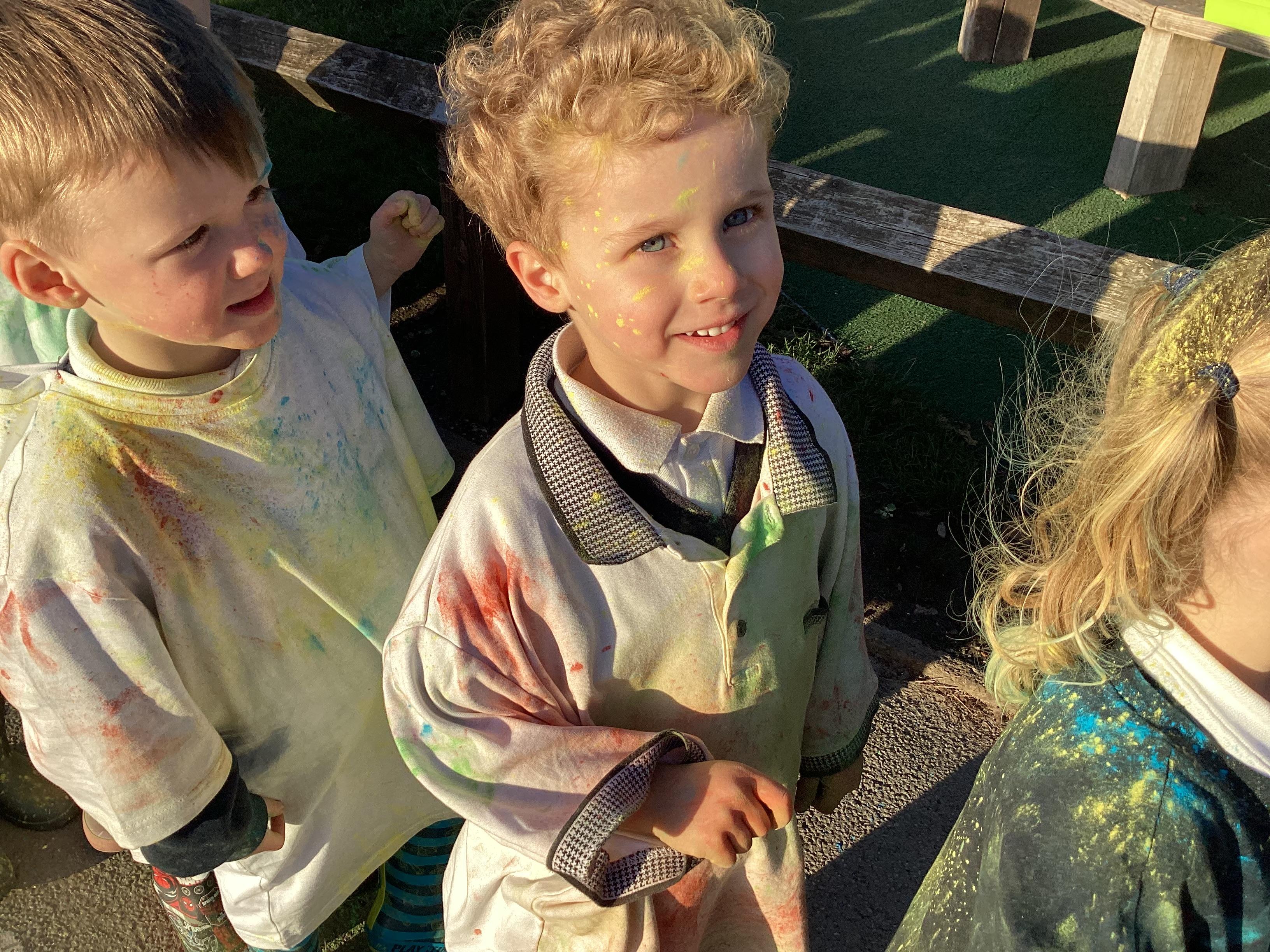 We also learnt about Holi which is the festival of colour. We celebrated this by throwing powder paint making each other very colourful.