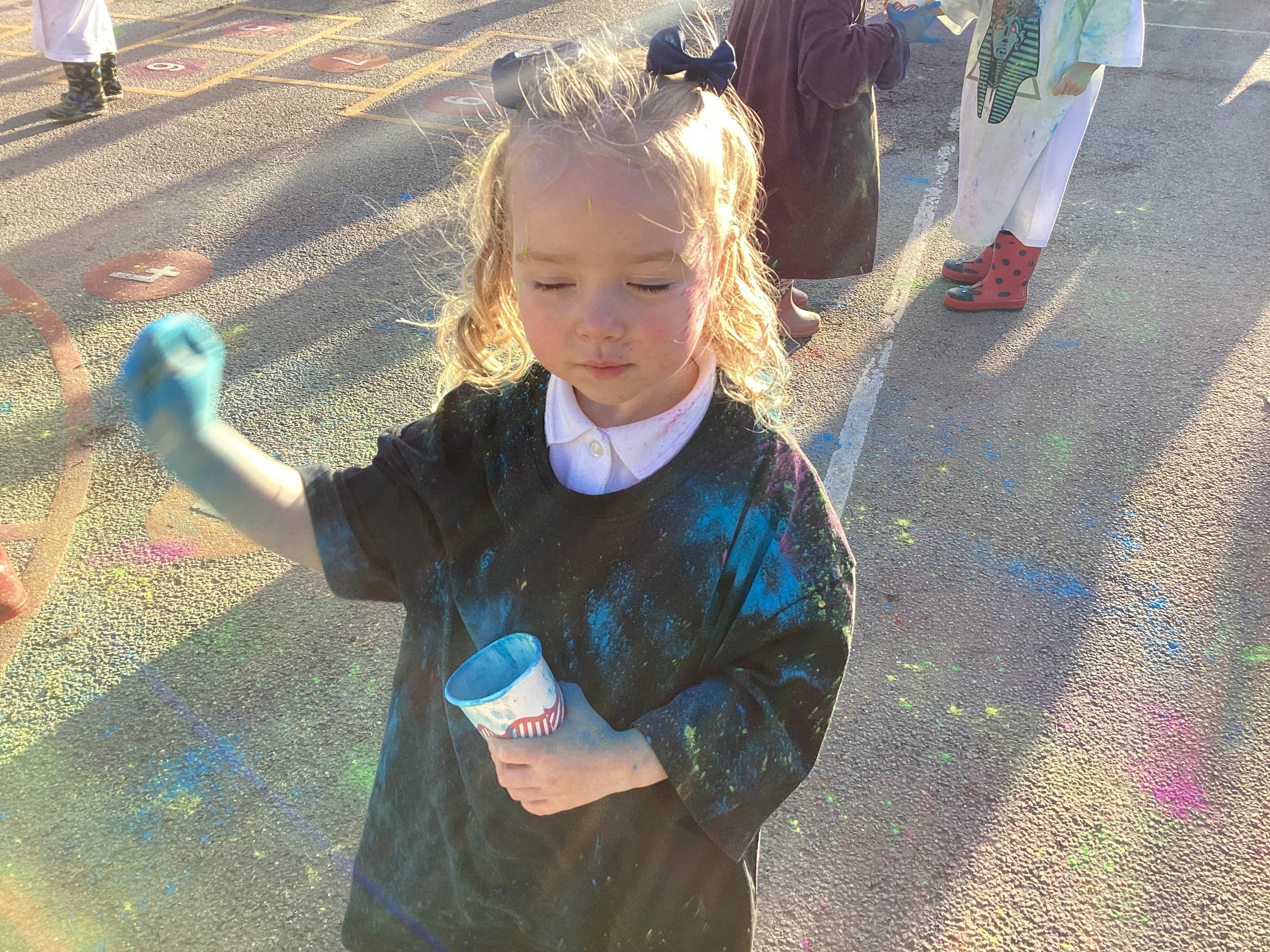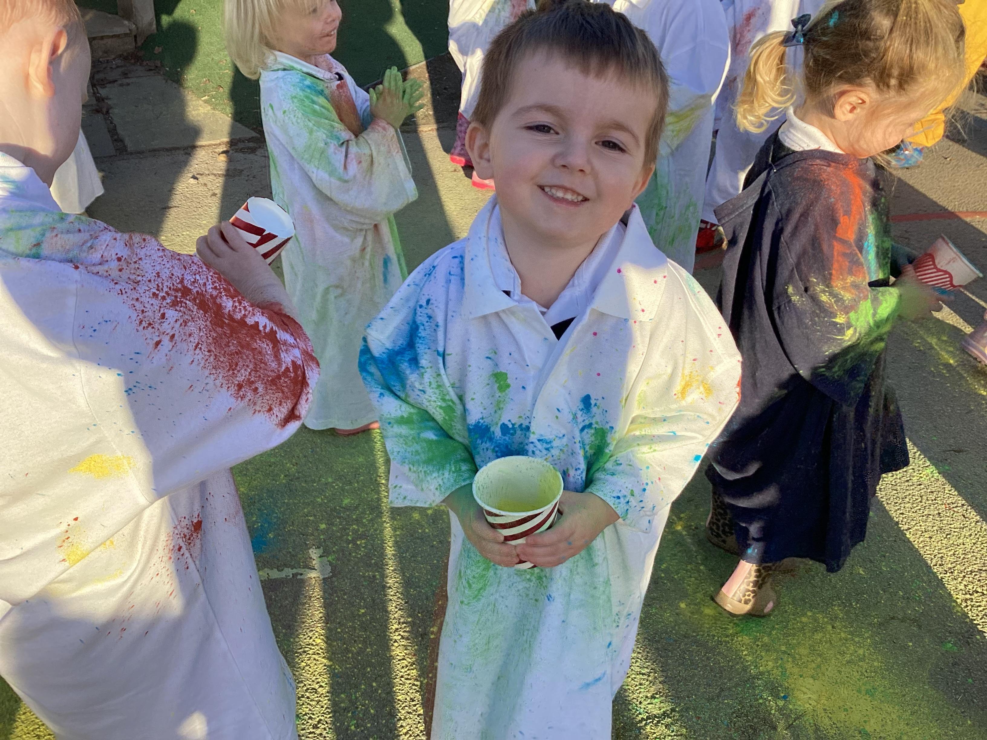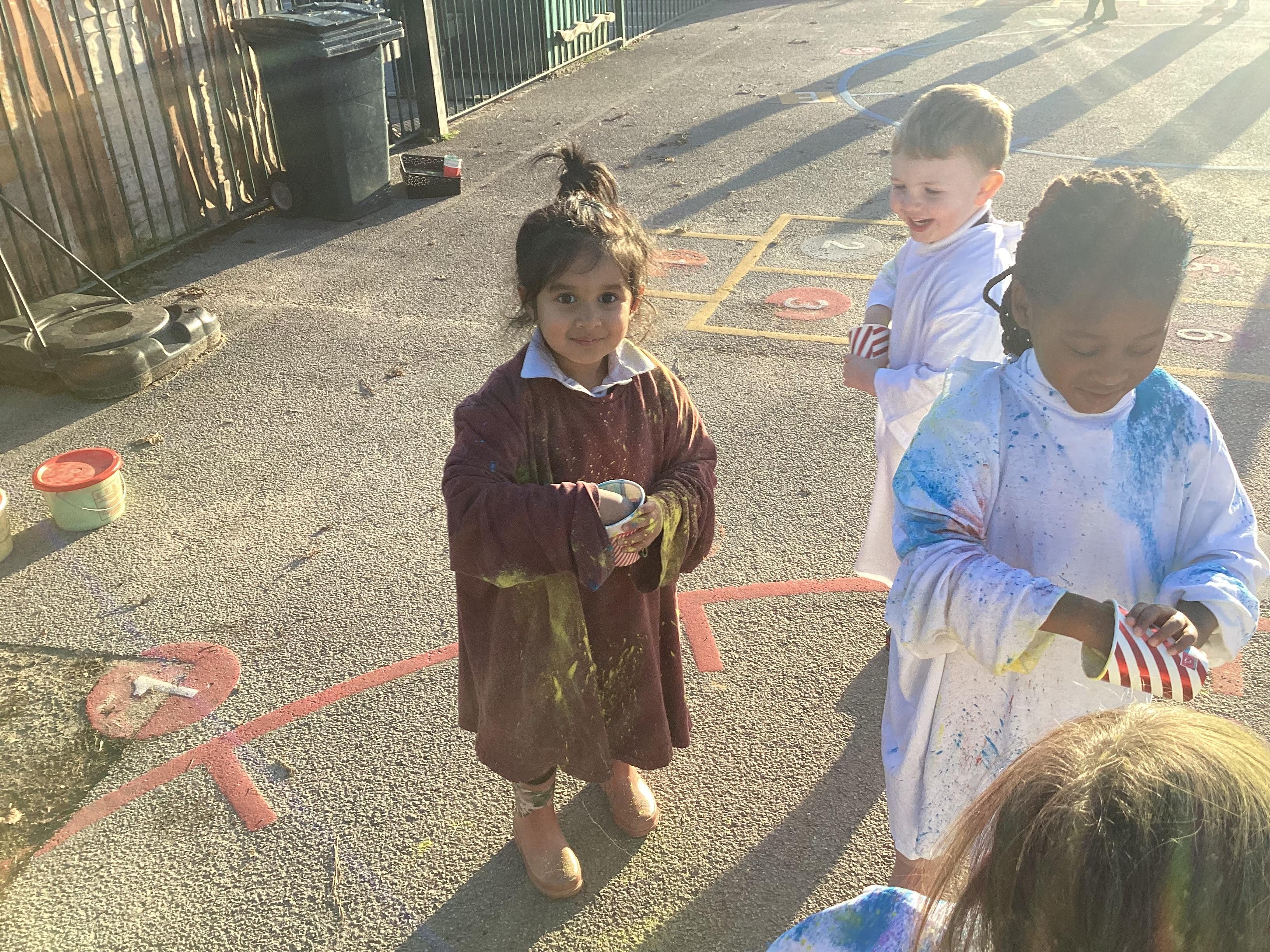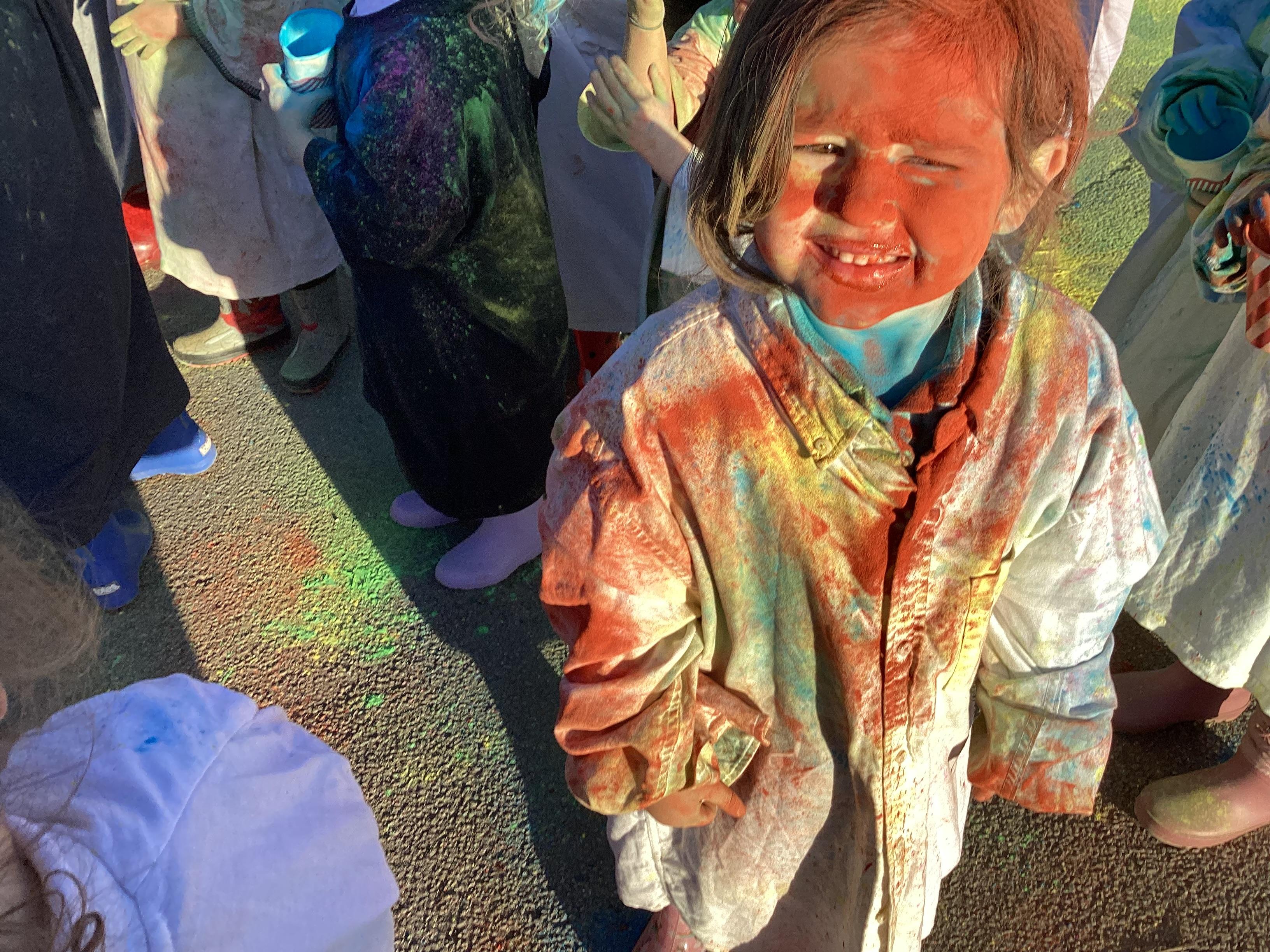 We also learnt about Holi which is the festival of colour. We celebrated this by throwing powder paint making each other very colourful.