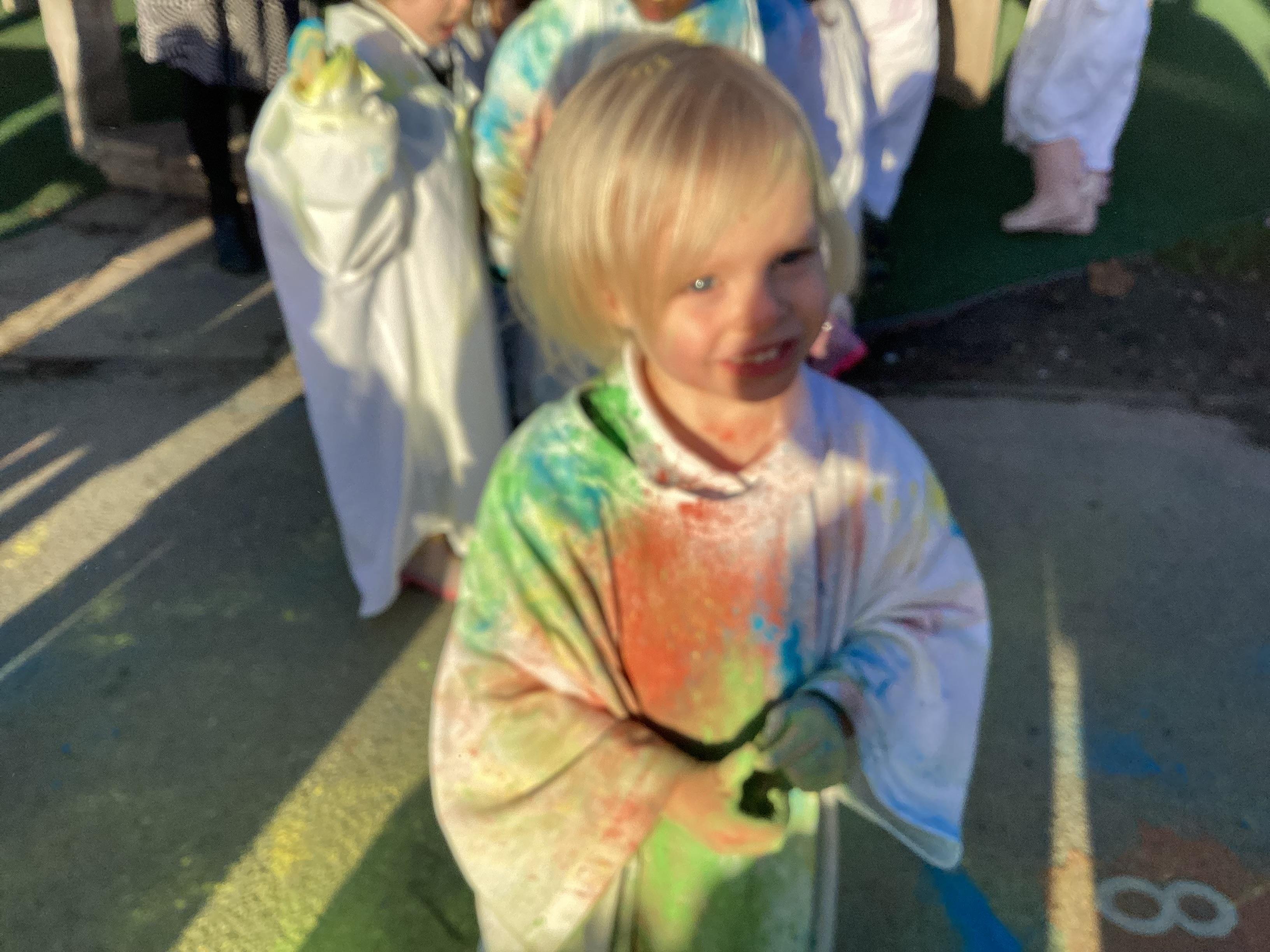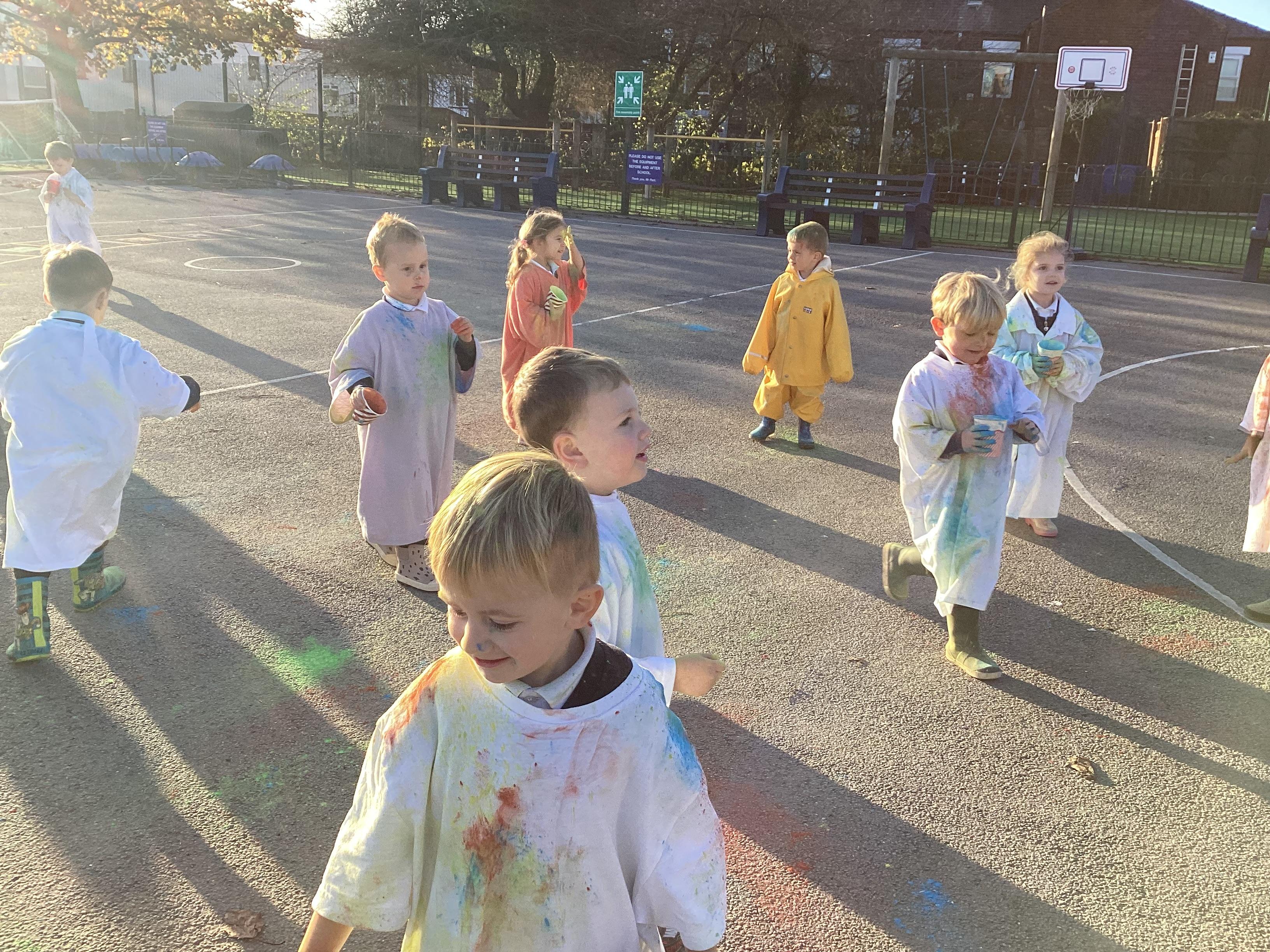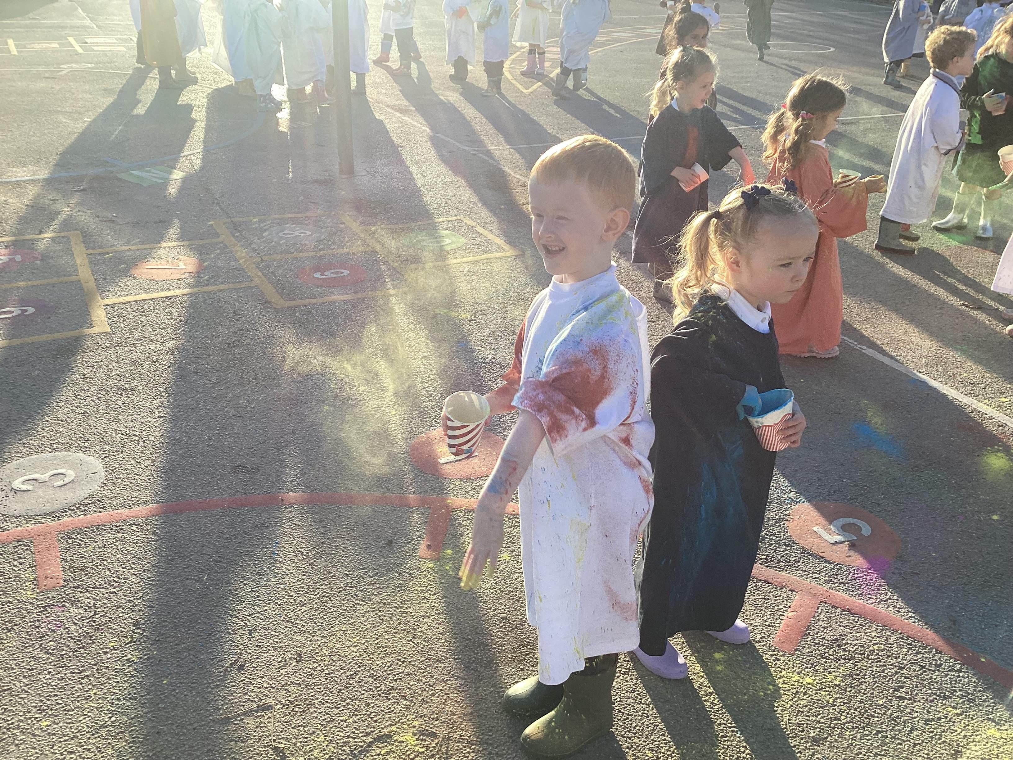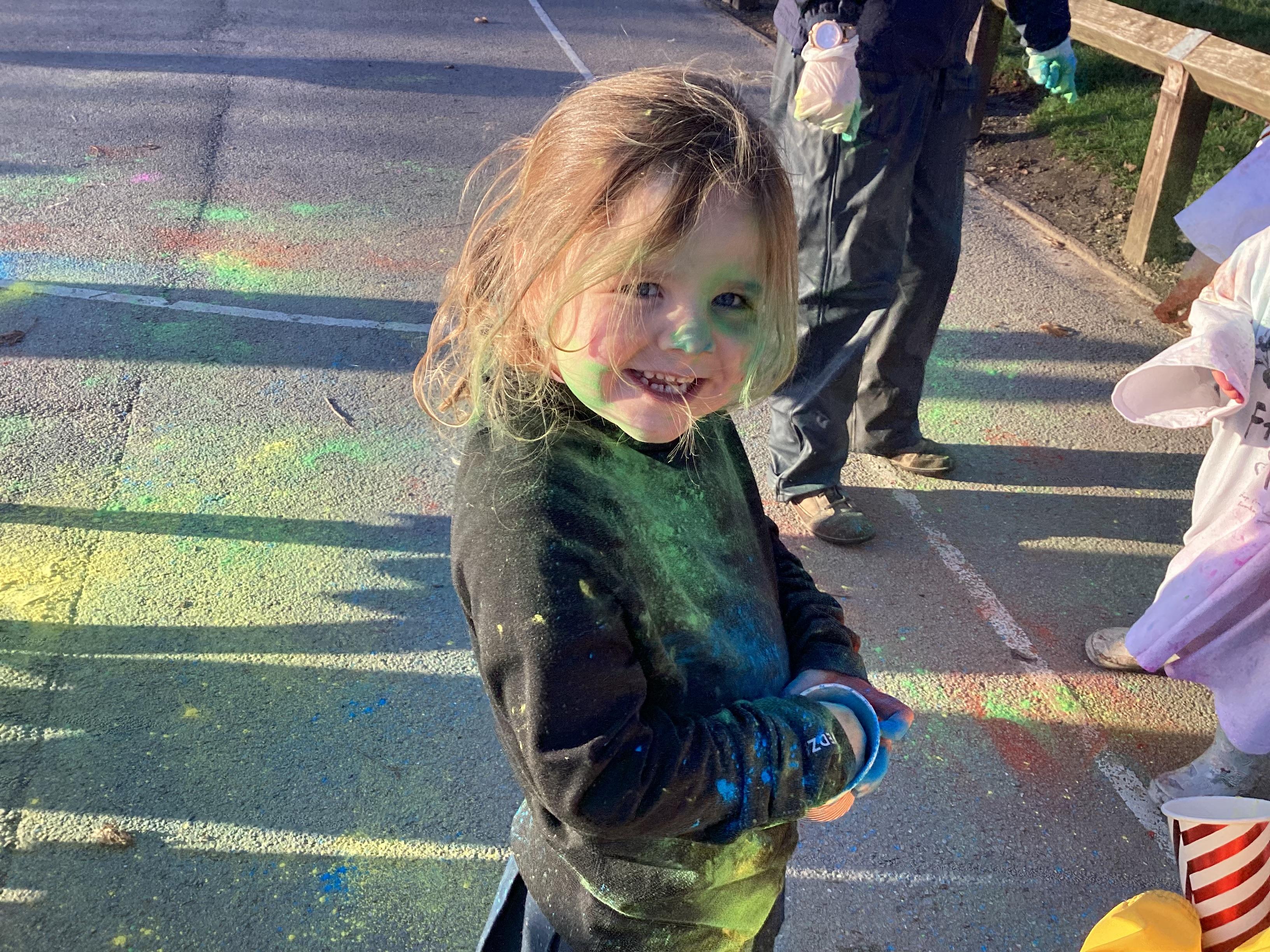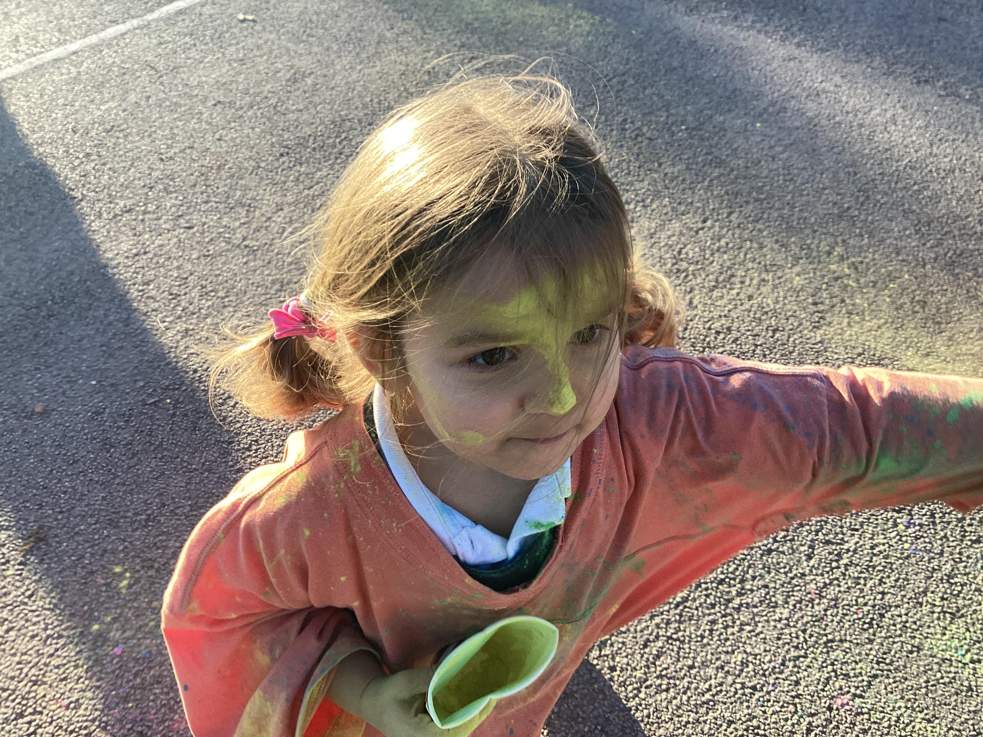 We also learnt about Holi which is the festival of colour. We celebrated this by throwing powder paint making each other very colourful.