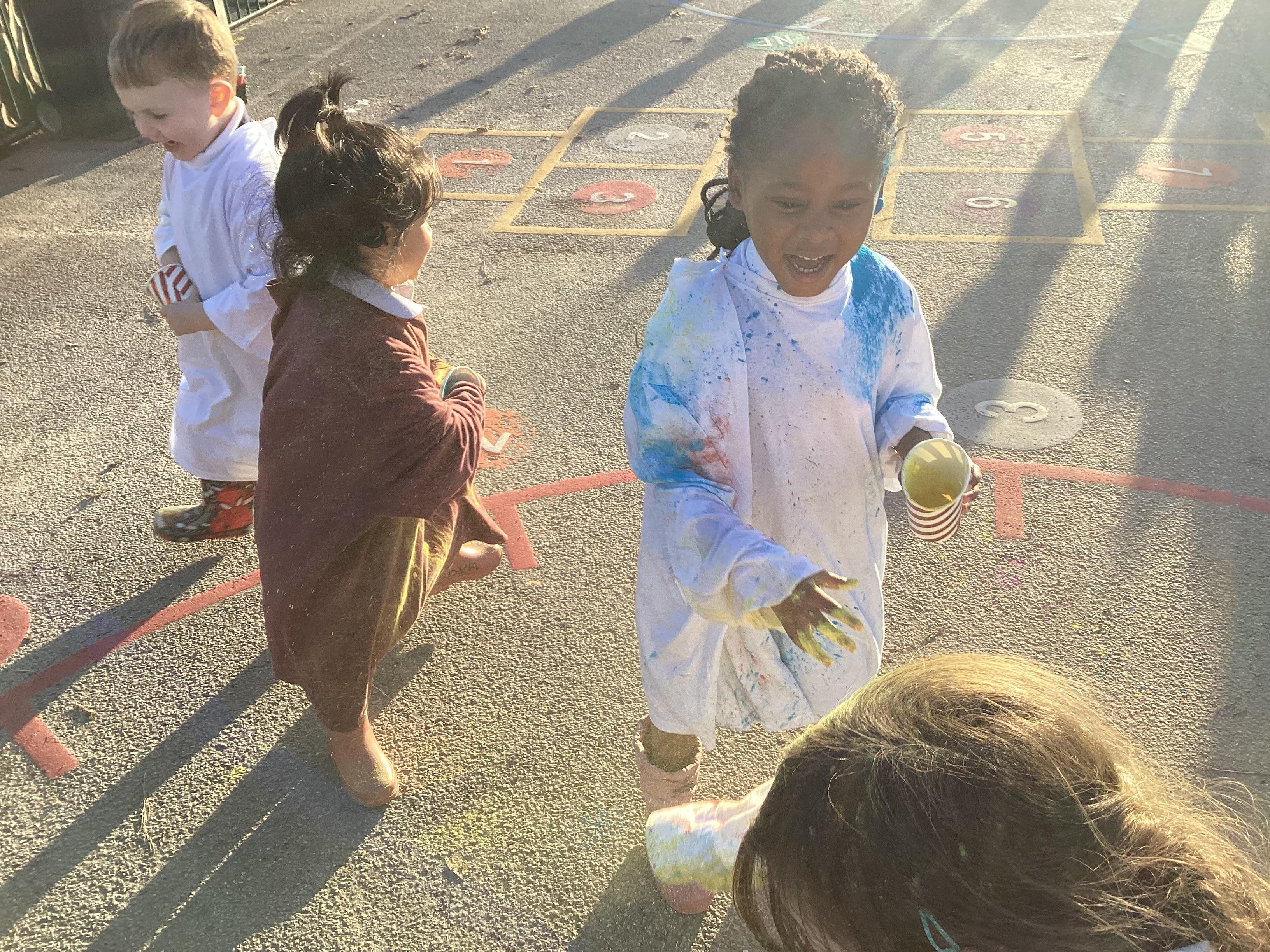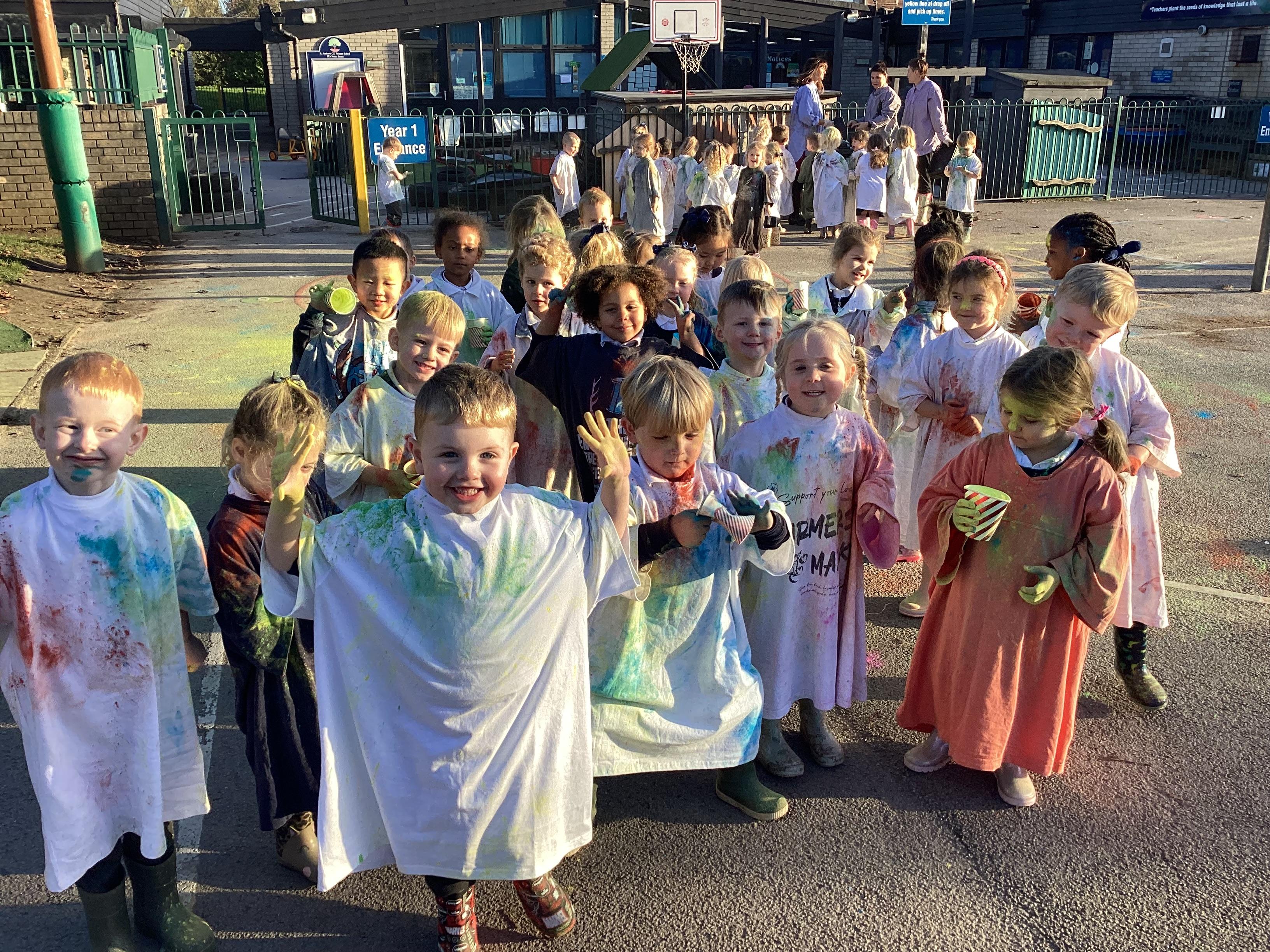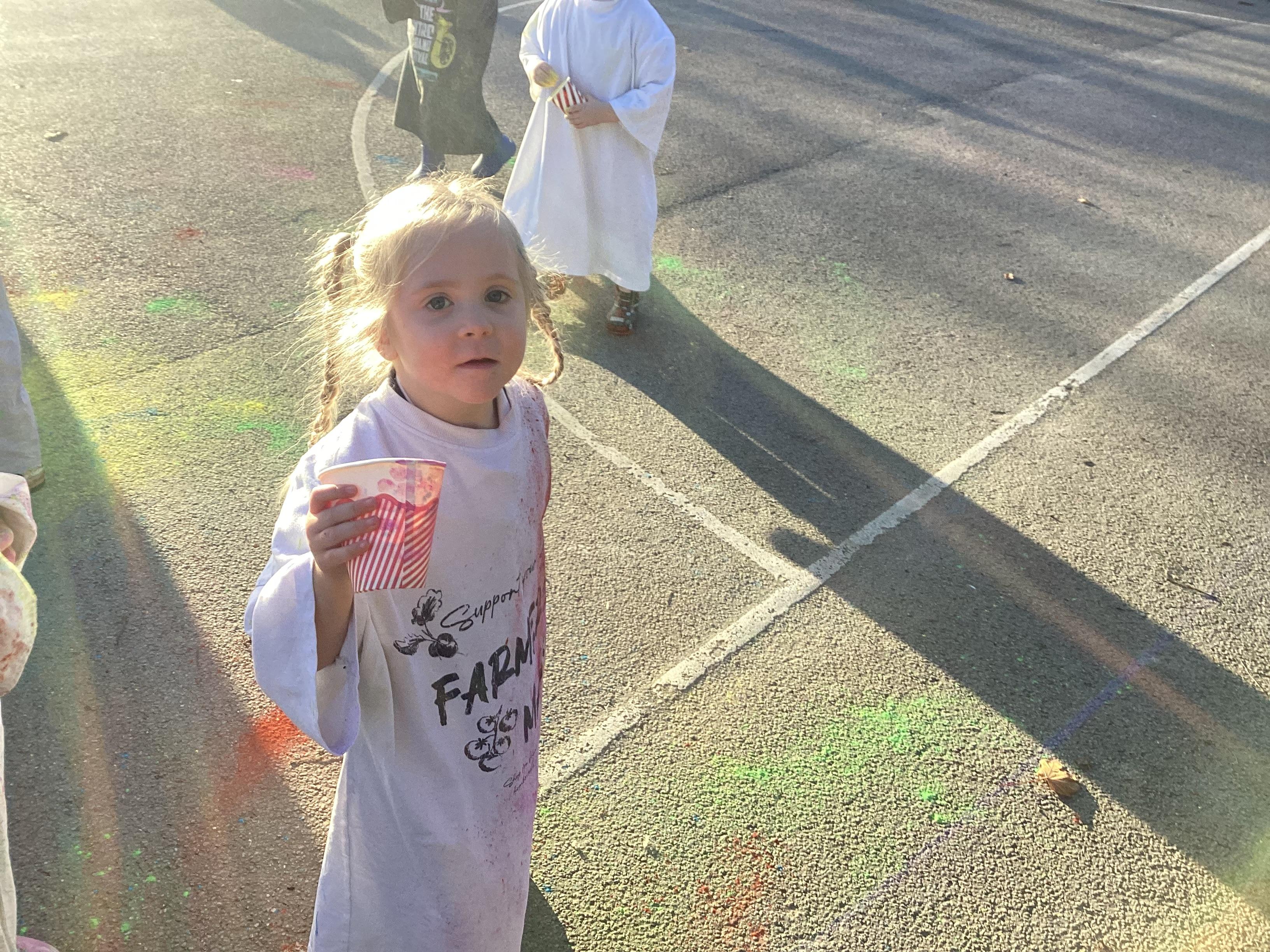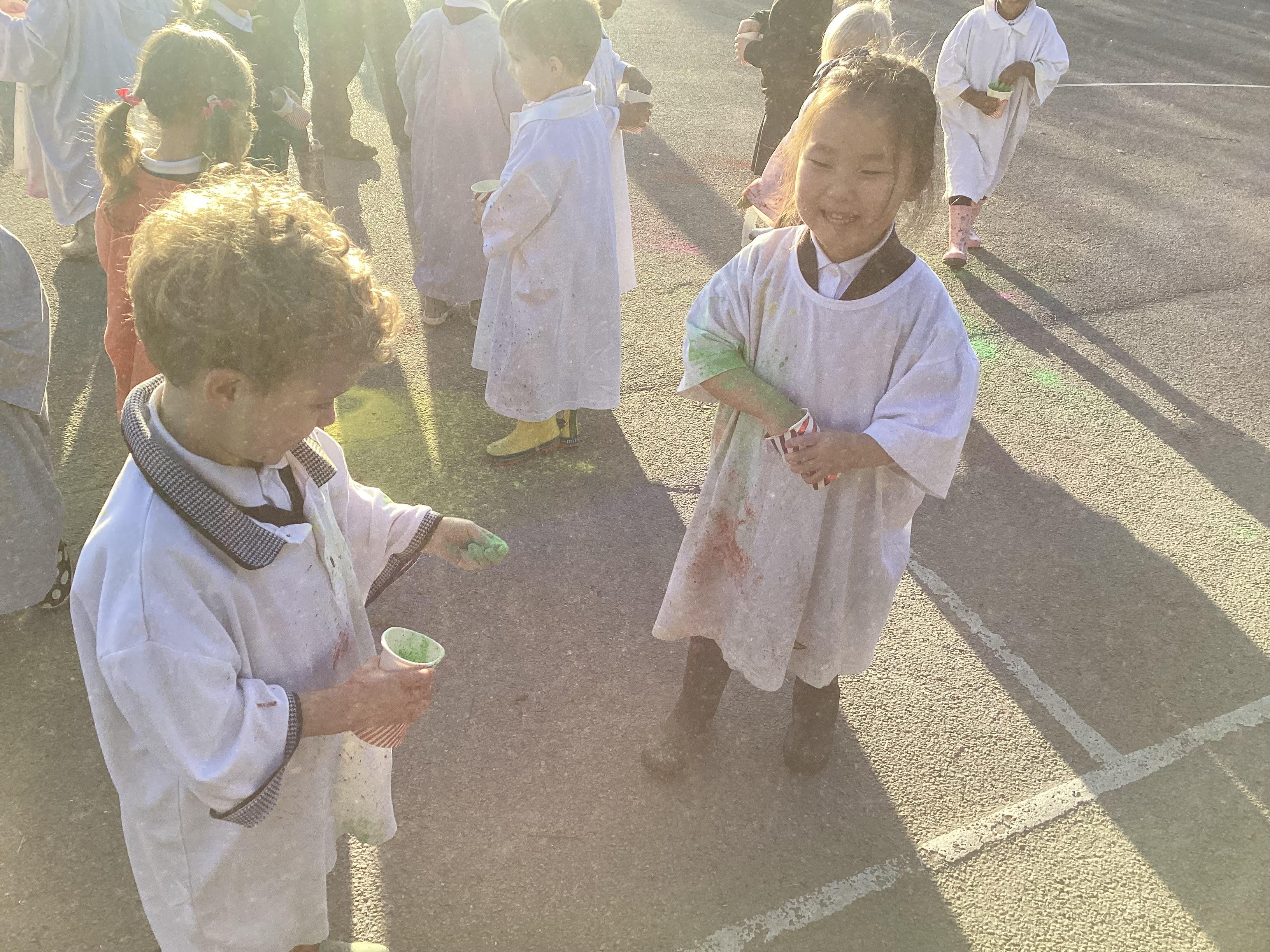 We also learnt about Holi which is the festival of colour. We celebrated this by throwing powder paint making each other very colourful.