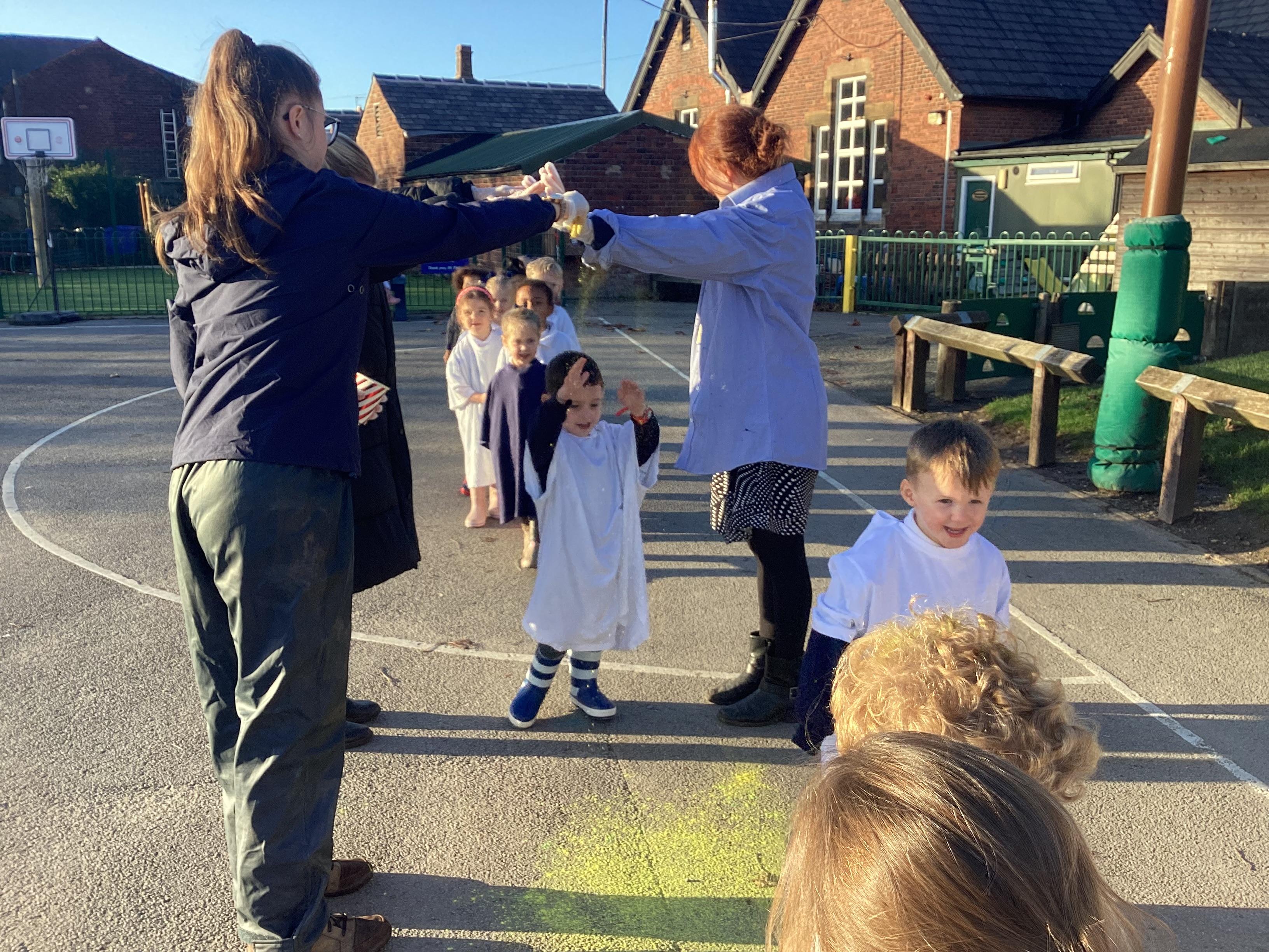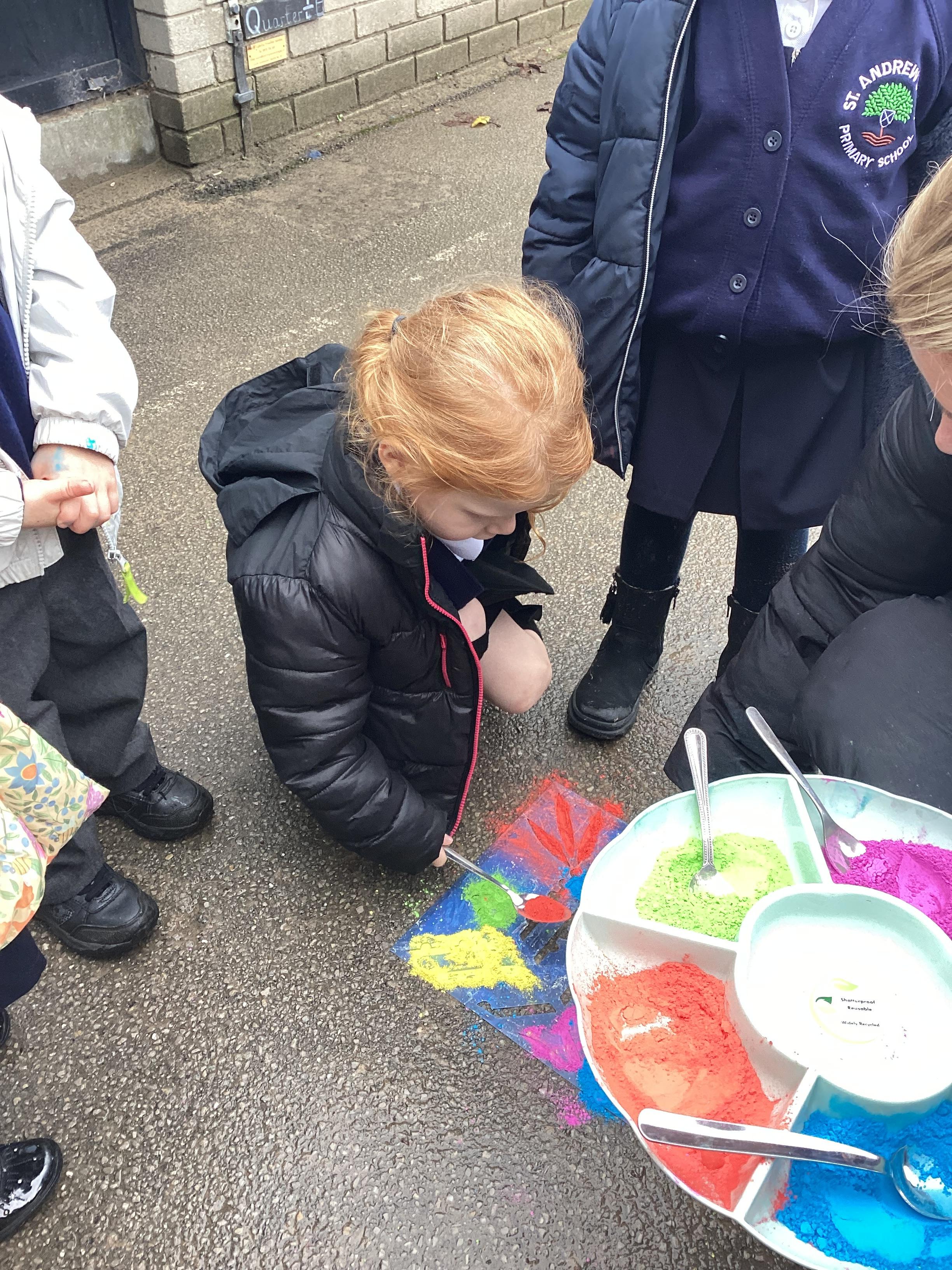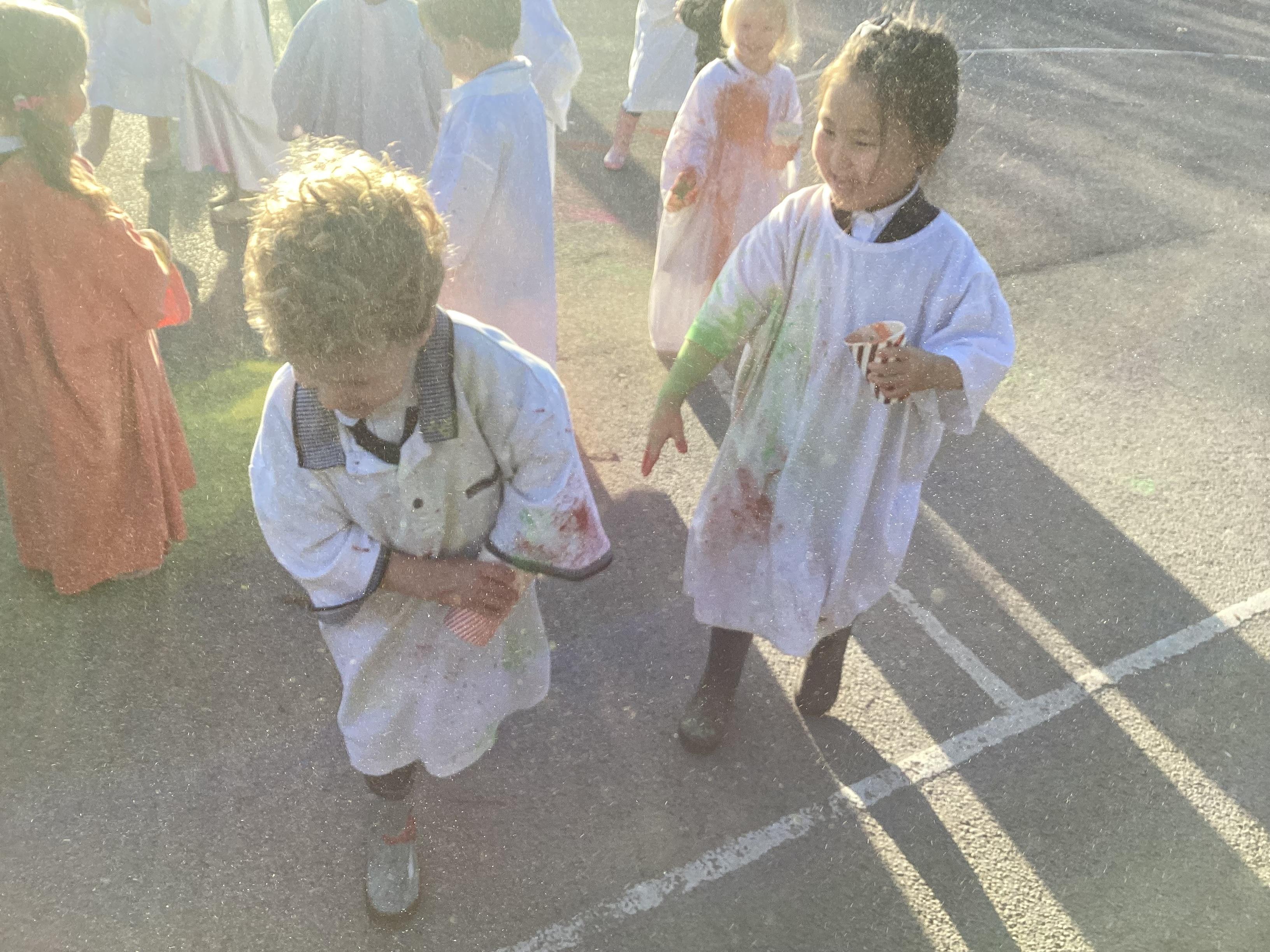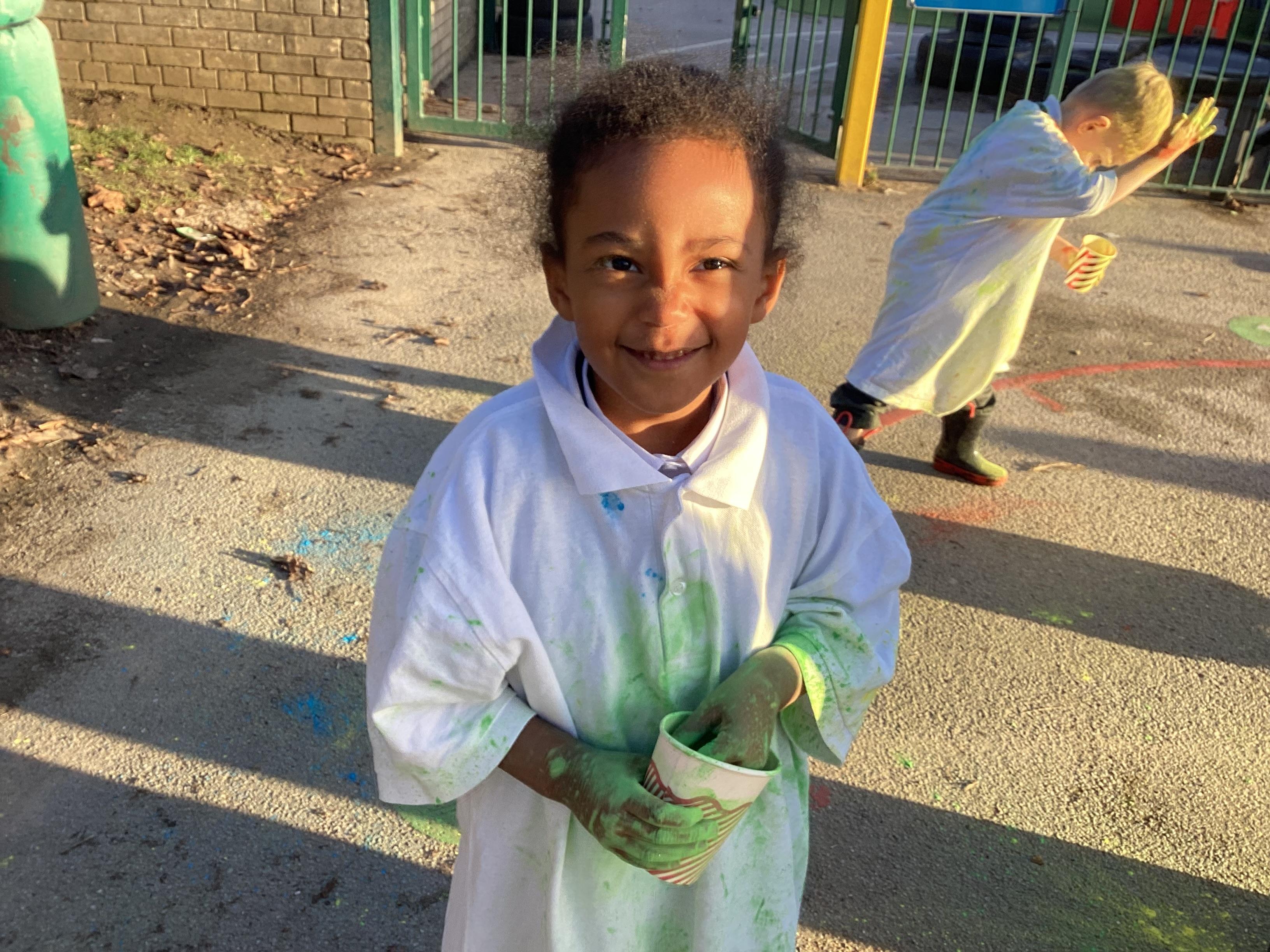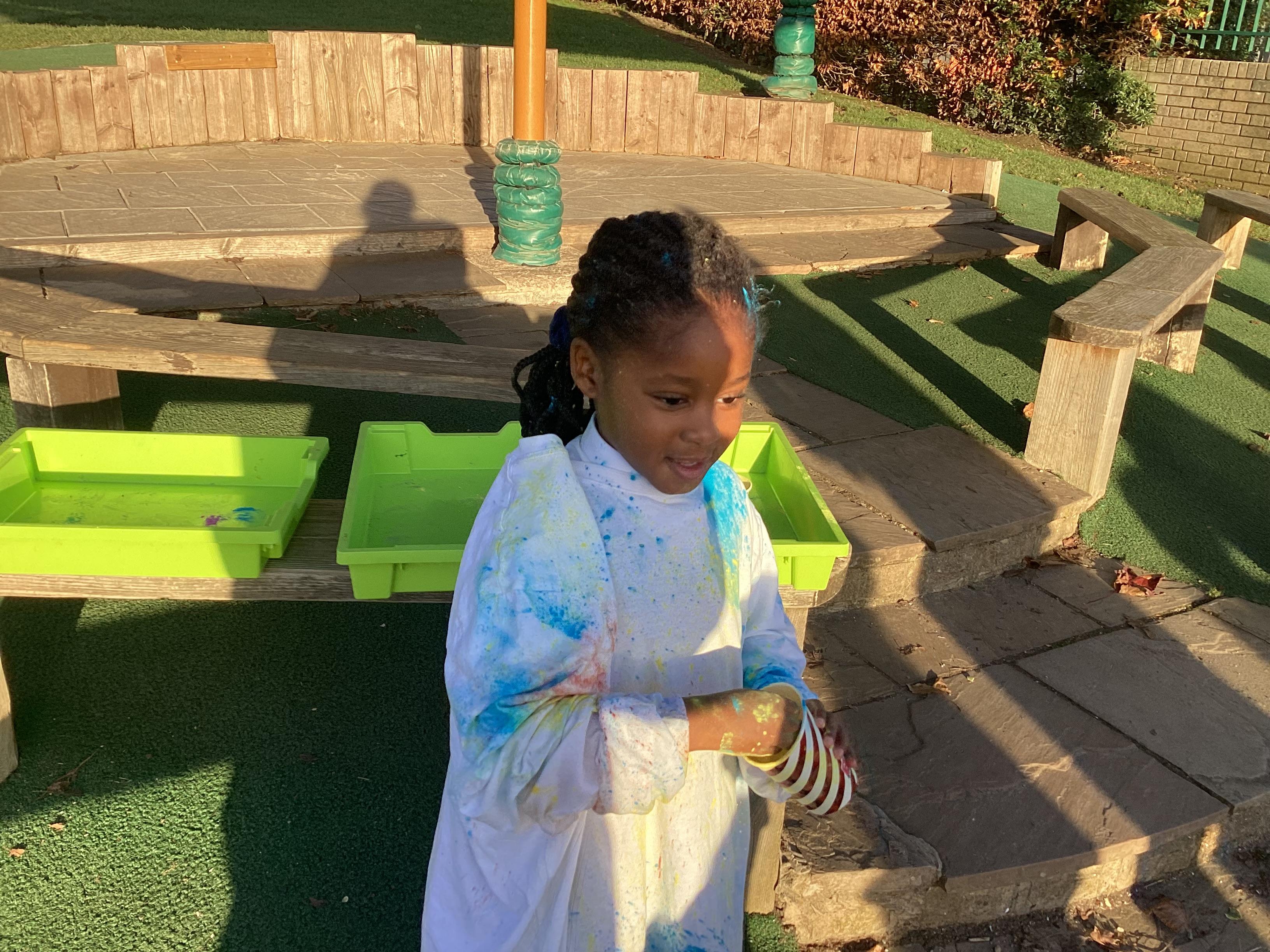 We also learnt about Holi which is the festival of colour. We celebrated this by throwing powder paint making each other very colourful.