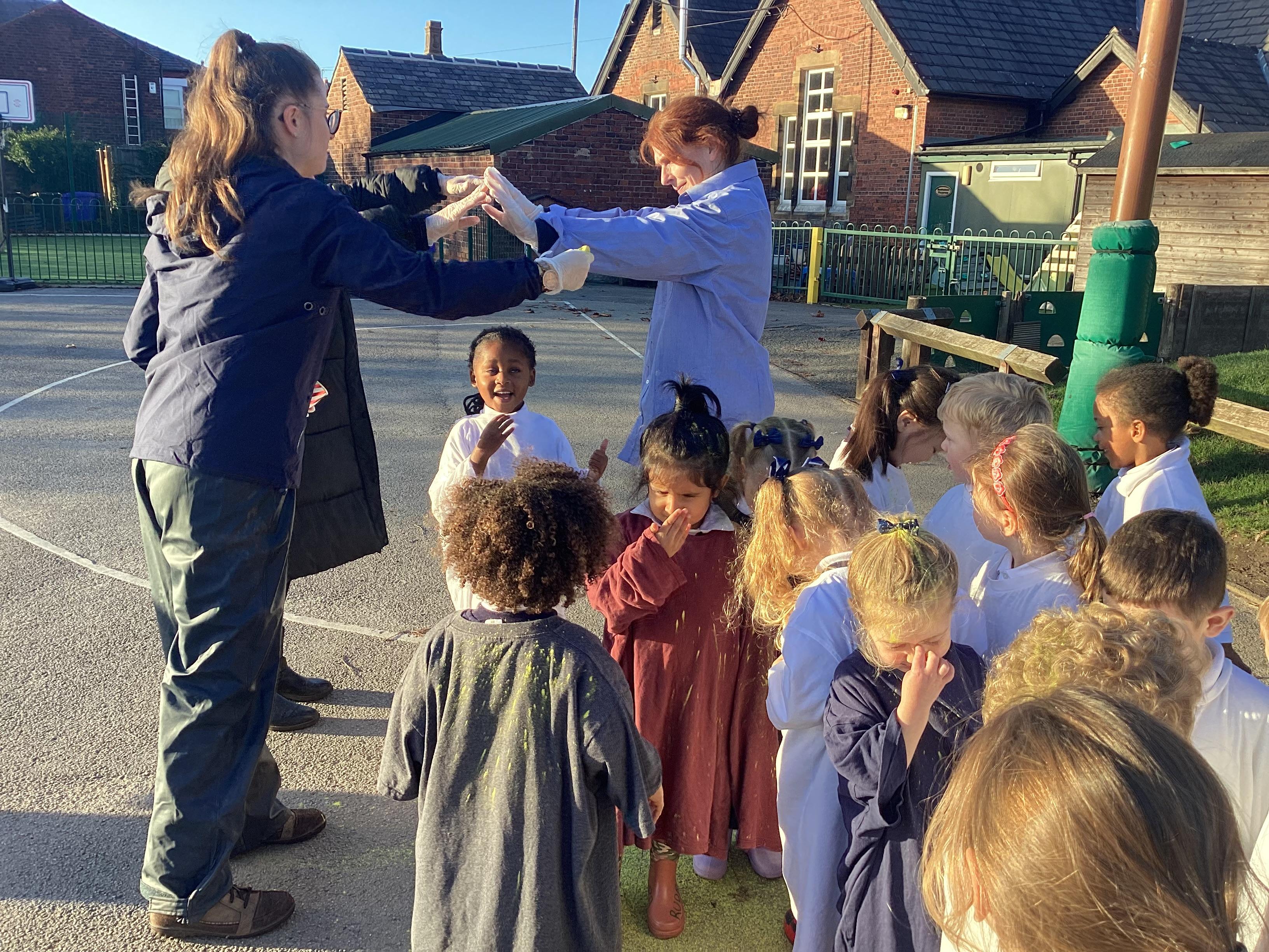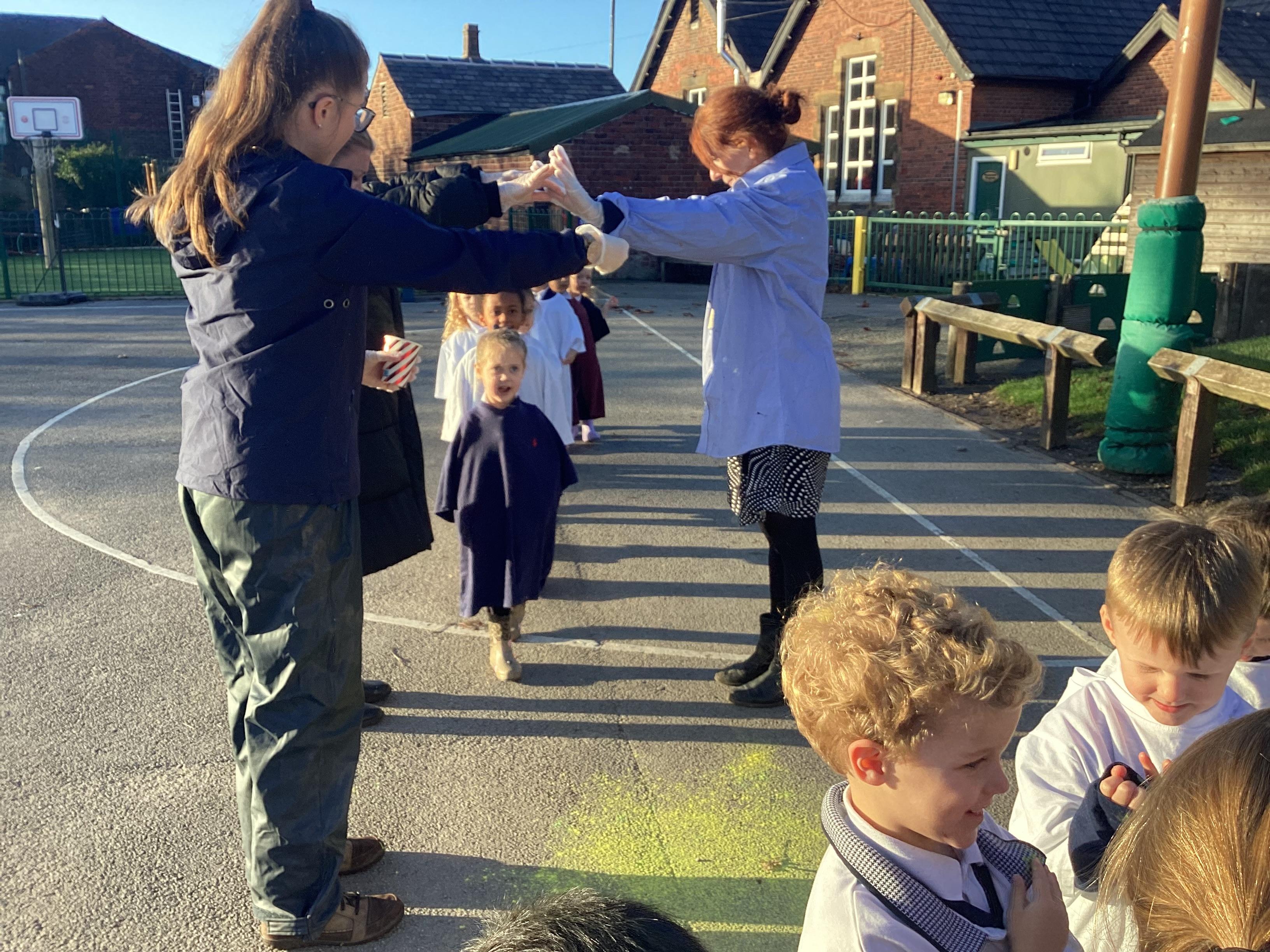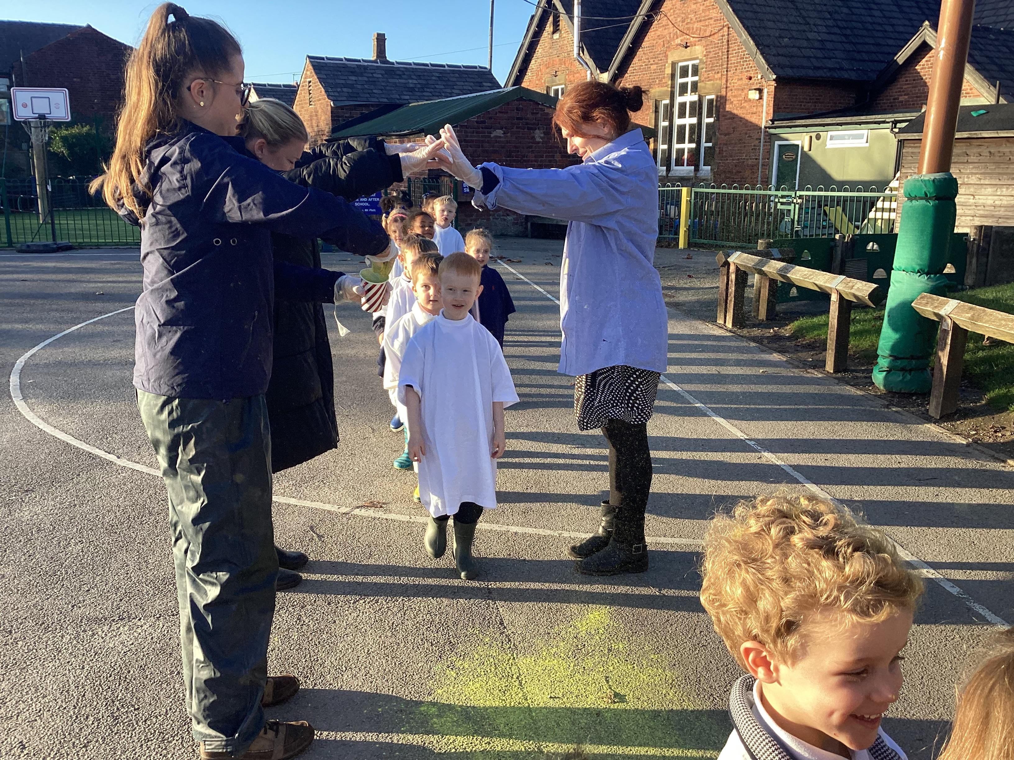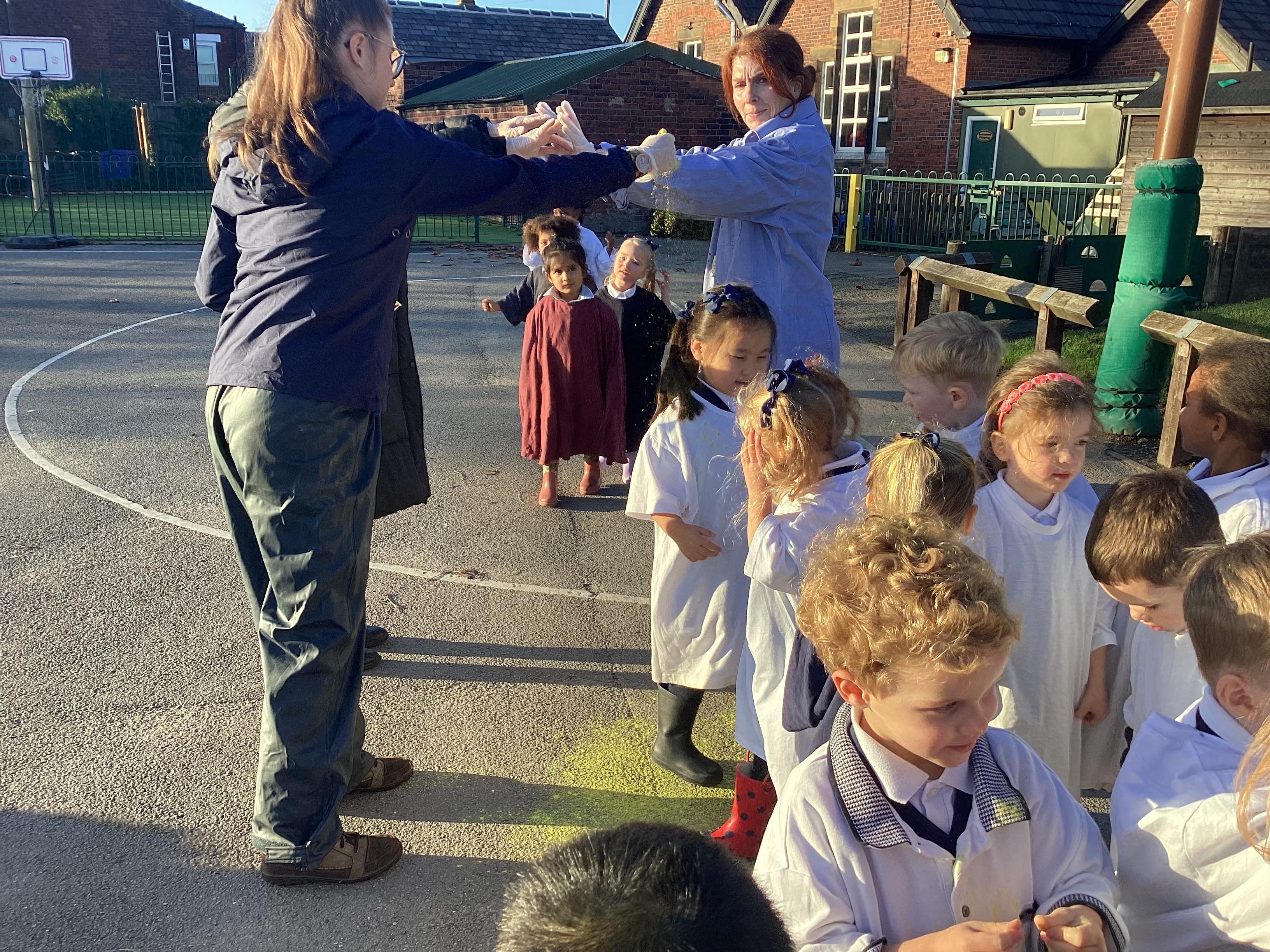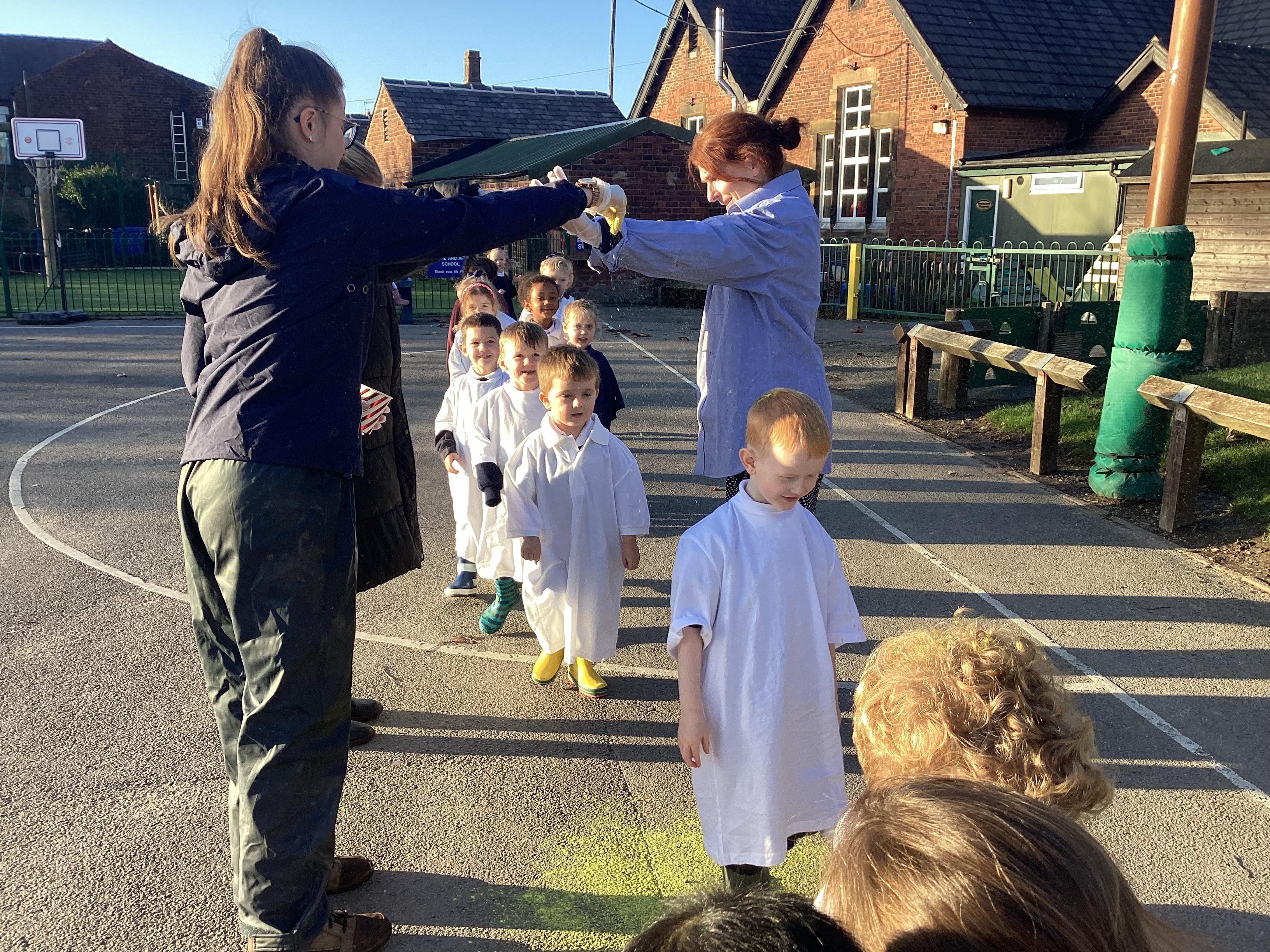 We have been learning all about Diwali, which is the festival of light. We have drawn and painted rangoli patterns and made our own patterns outside using powder paints. We had mendhi henna tattoos painted on our hands, we've dressed up in traditional Indian clothes and have made our very own clay diva lamps to take home. We even took part in an Indian dance workshop which was great fun.