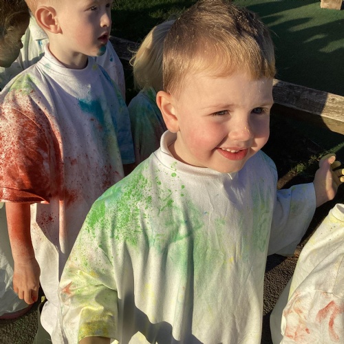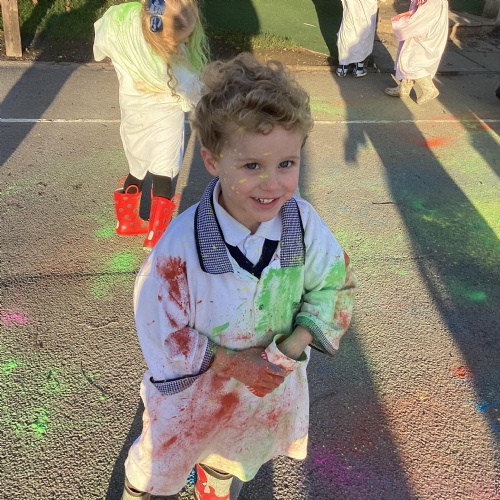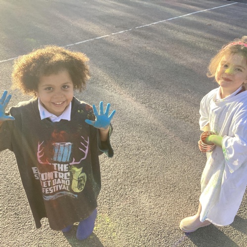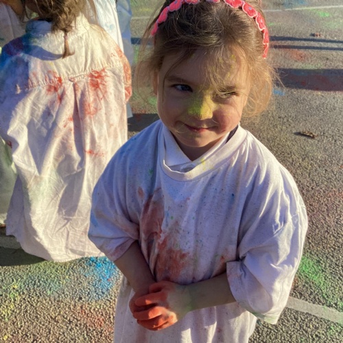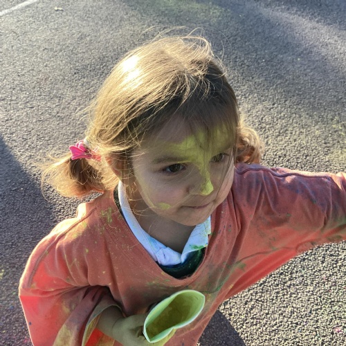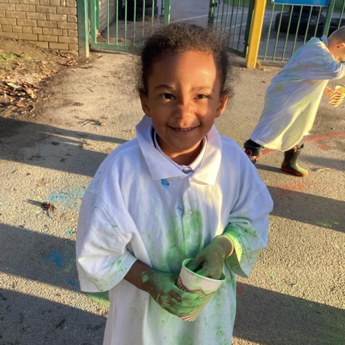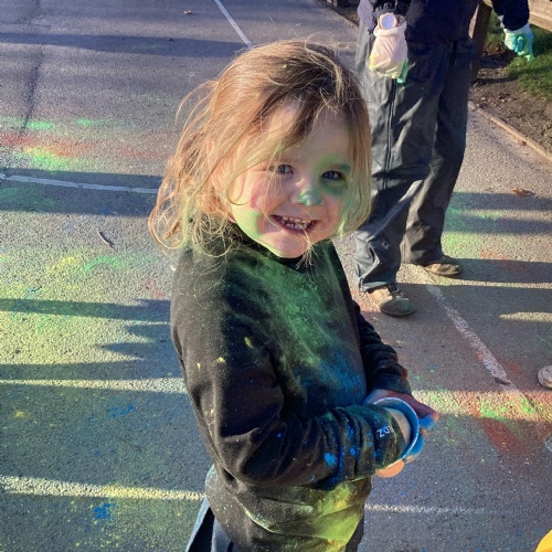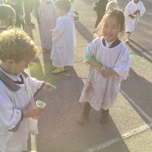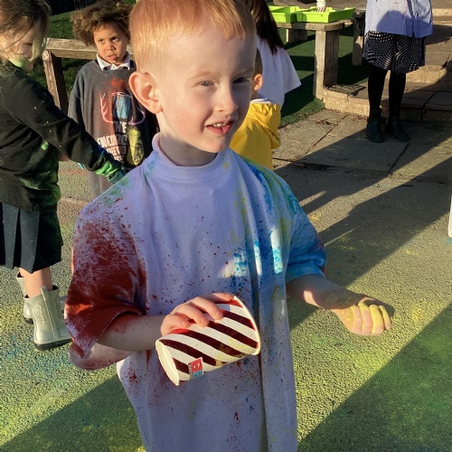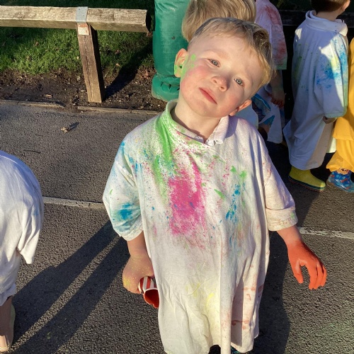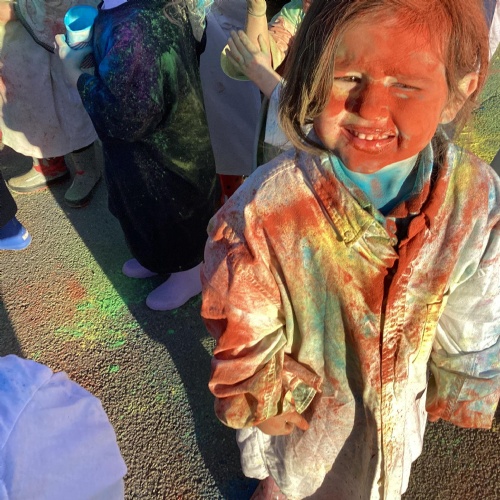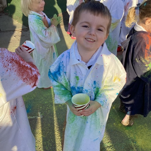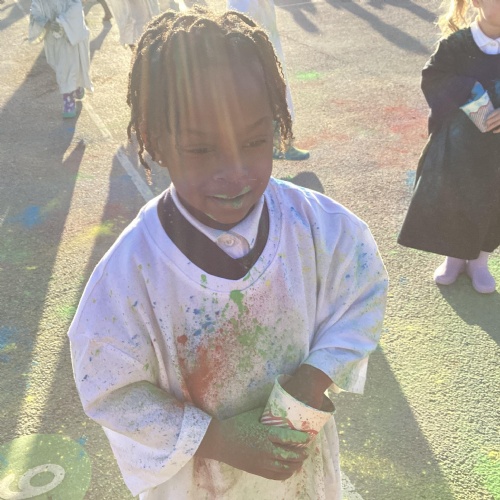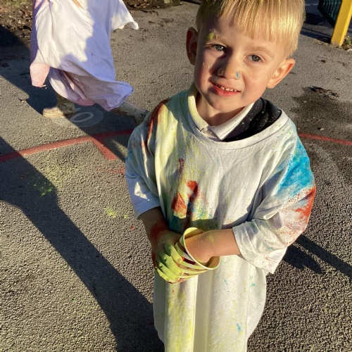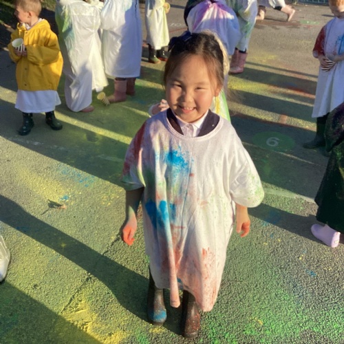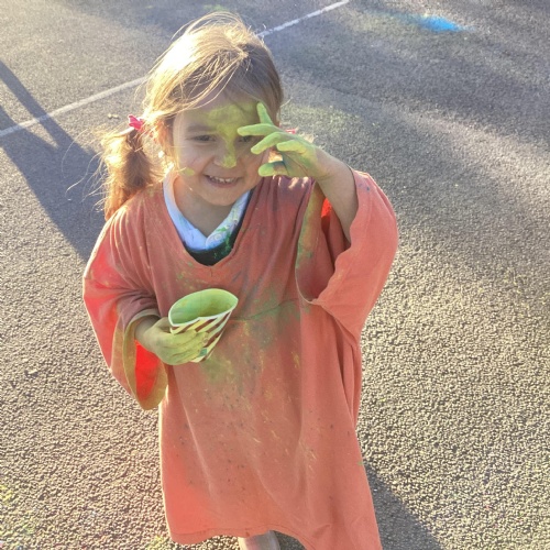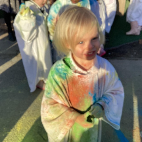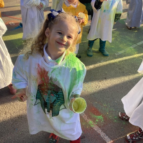 We also learnt about Holi which is the festival of colour. We celebrated this by throwing powder paint making each other very colourful.