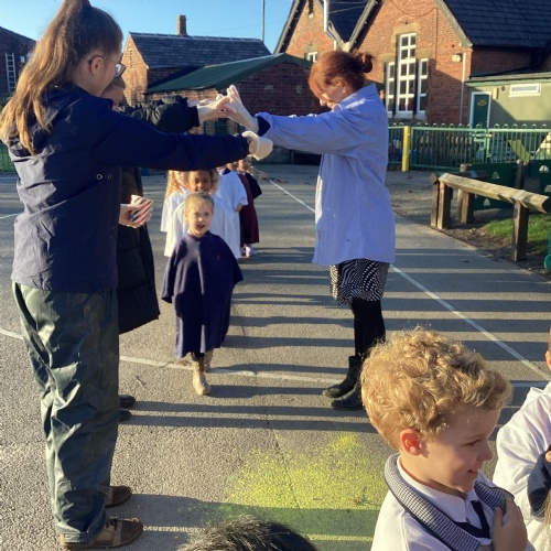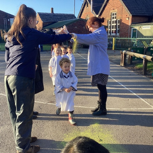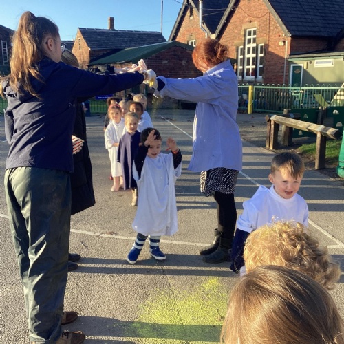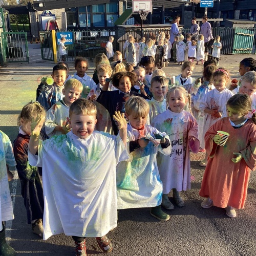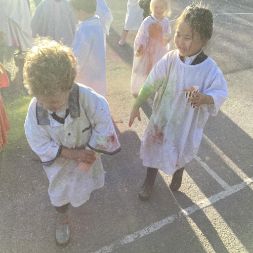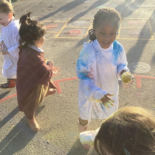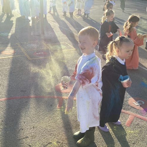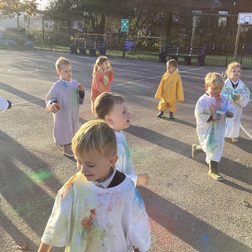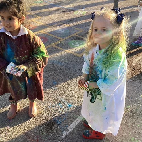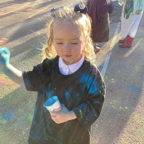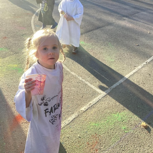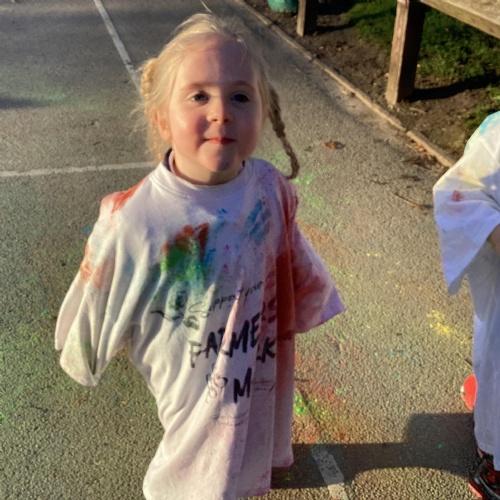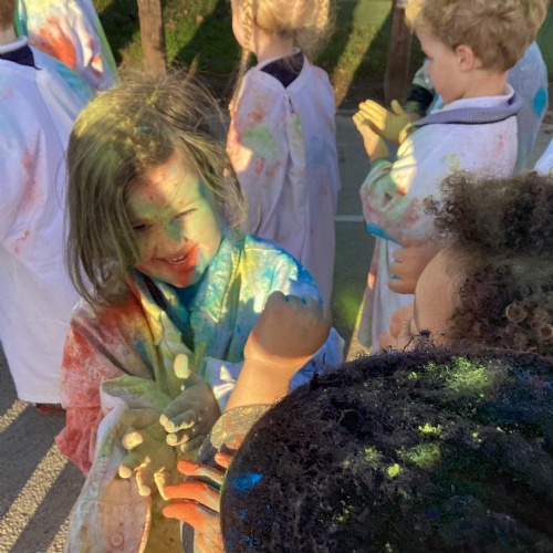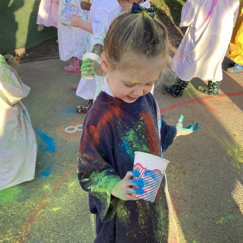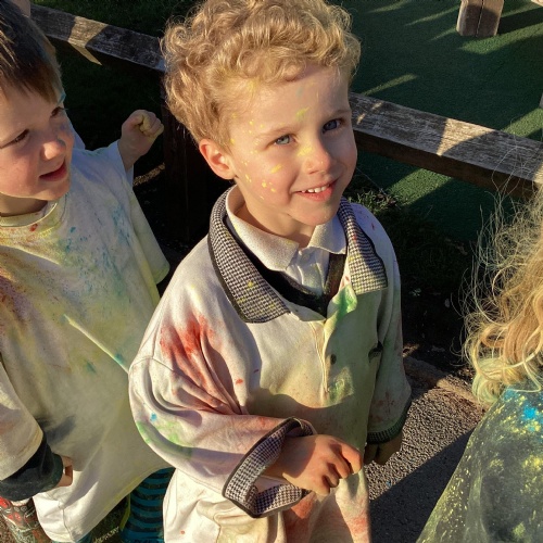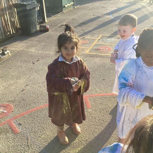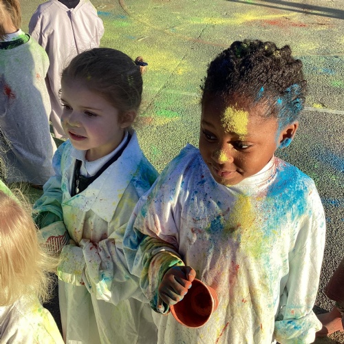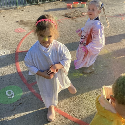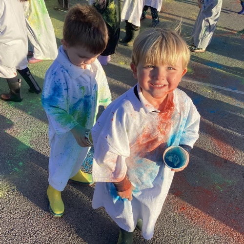 We also learnt about Holi which is the festival of colour. We celebrated this by throwing powder paint making each other very colourful.