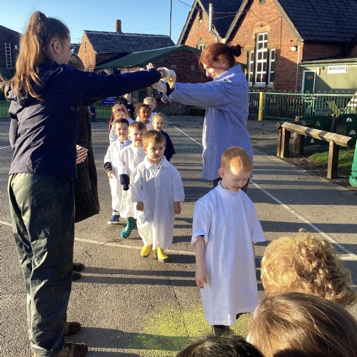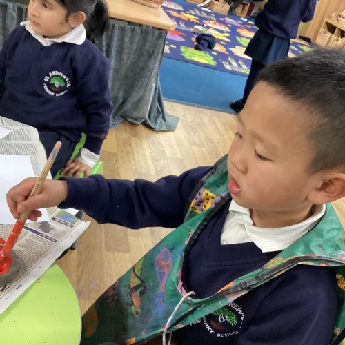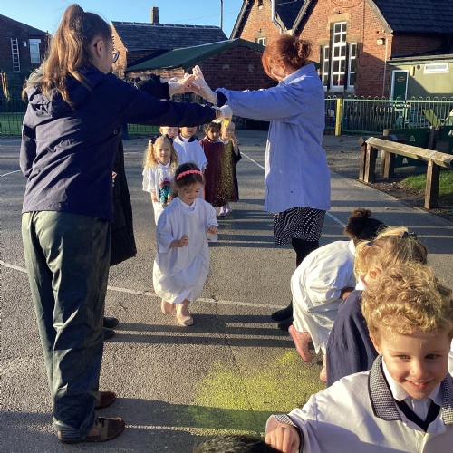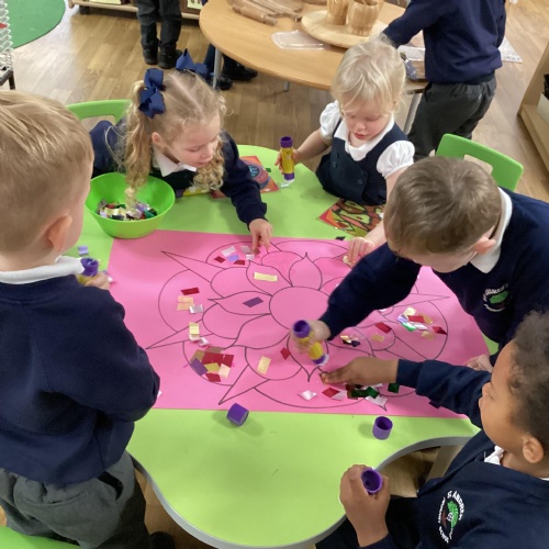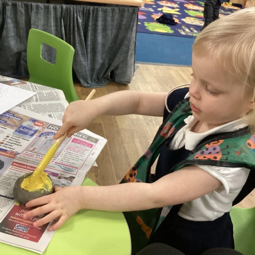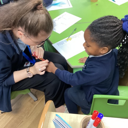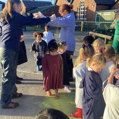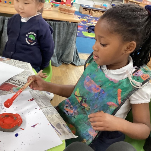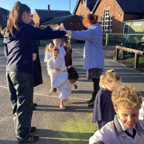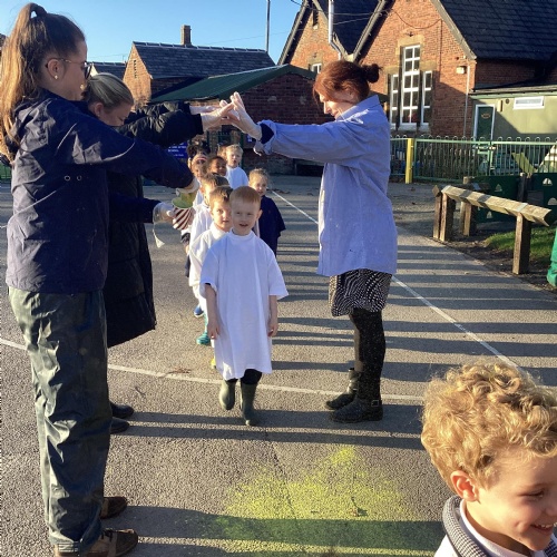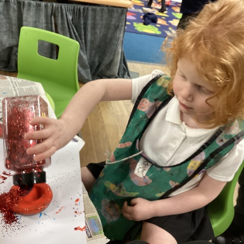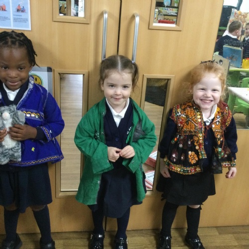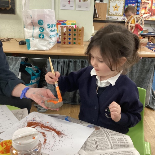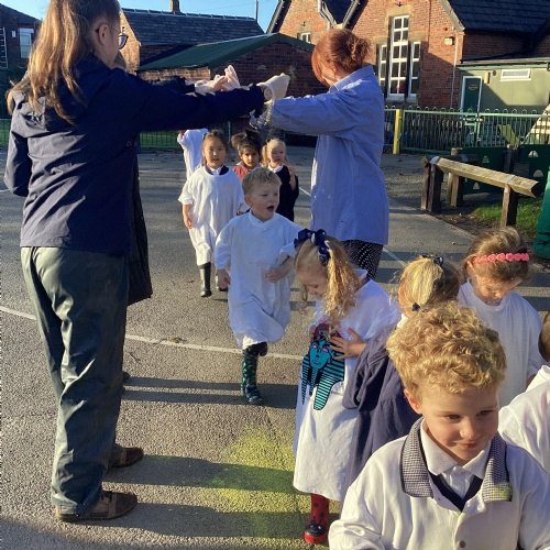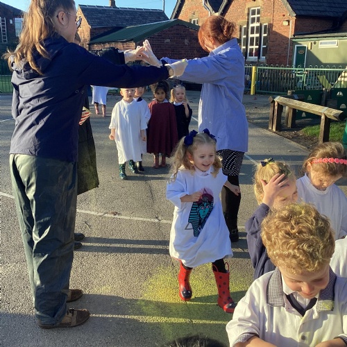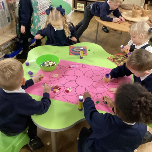 We have been learning all about Diwali, which is the festival of light. We have drawn and painted rangoli patterns and made our own patterns outside using powder paints. We had mendhi henna tattoos painted on our hands, we've dressed up in traditional Indian clothes and have made our very own clay diva lamps to take home. We even took part in an Indian dance workshop which was great fun.