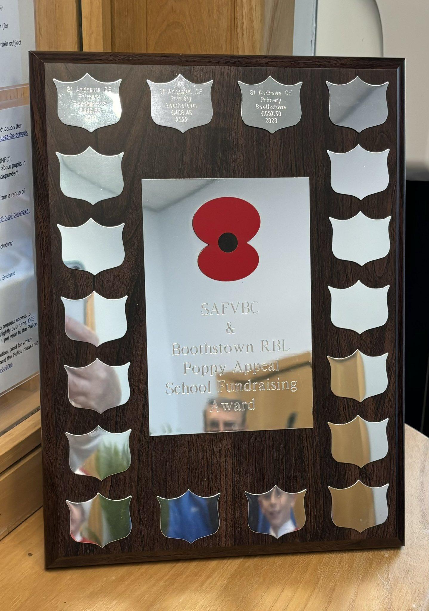 Feeling proud to have won an award from the British Legion for most money raised locally in their poppy appeal.
