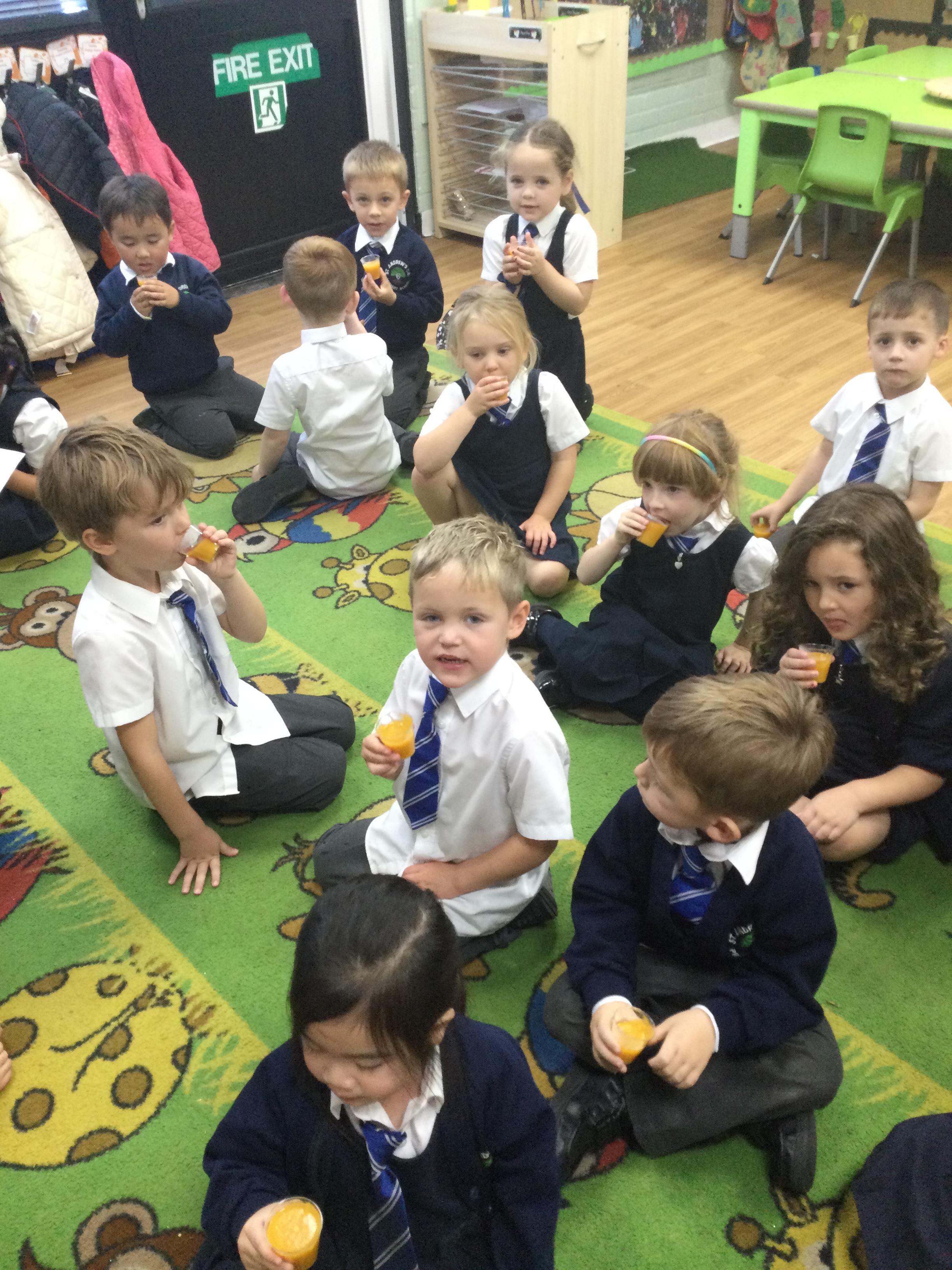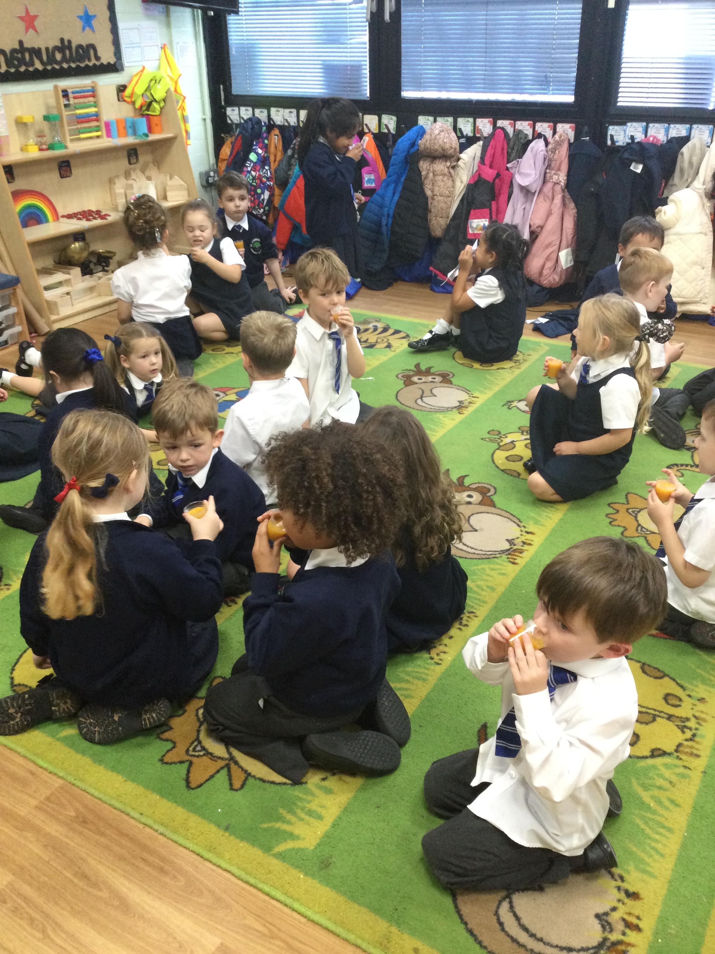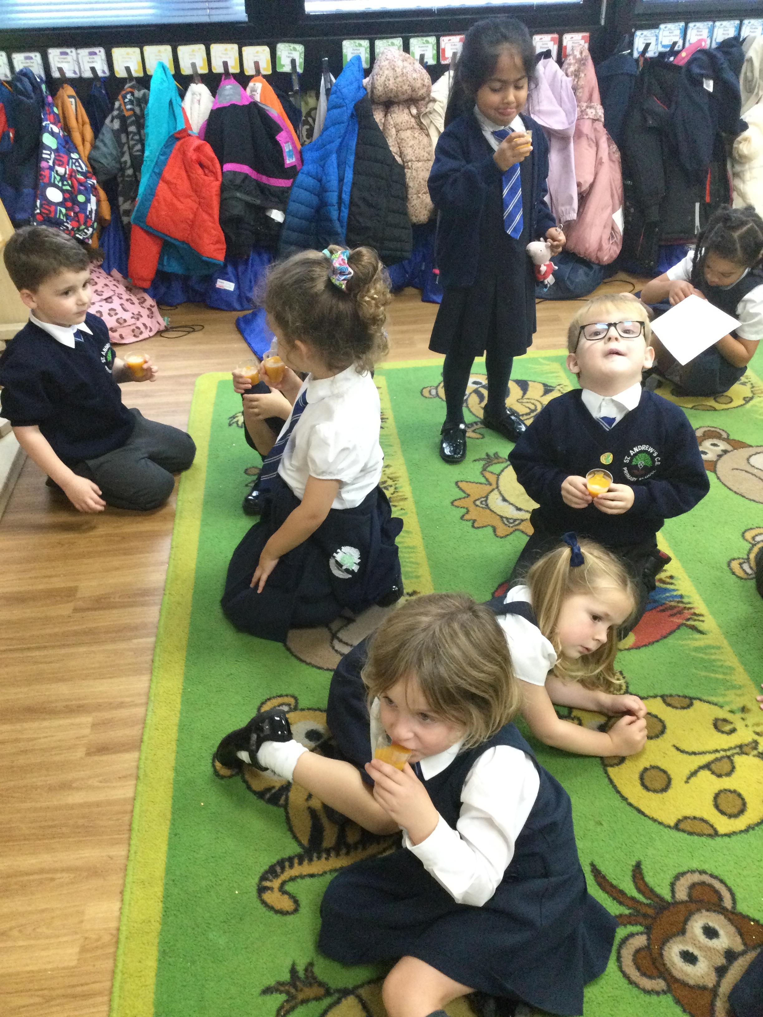 This half term we have been learning about Harvest. We have talked about the importance of Harvest time and where food comes from. We talked about the different kinds of fruits and vegetables we like, where they grow and the different types of foods we like that contain fruits and vegetables.