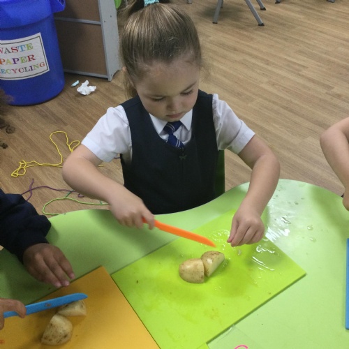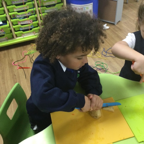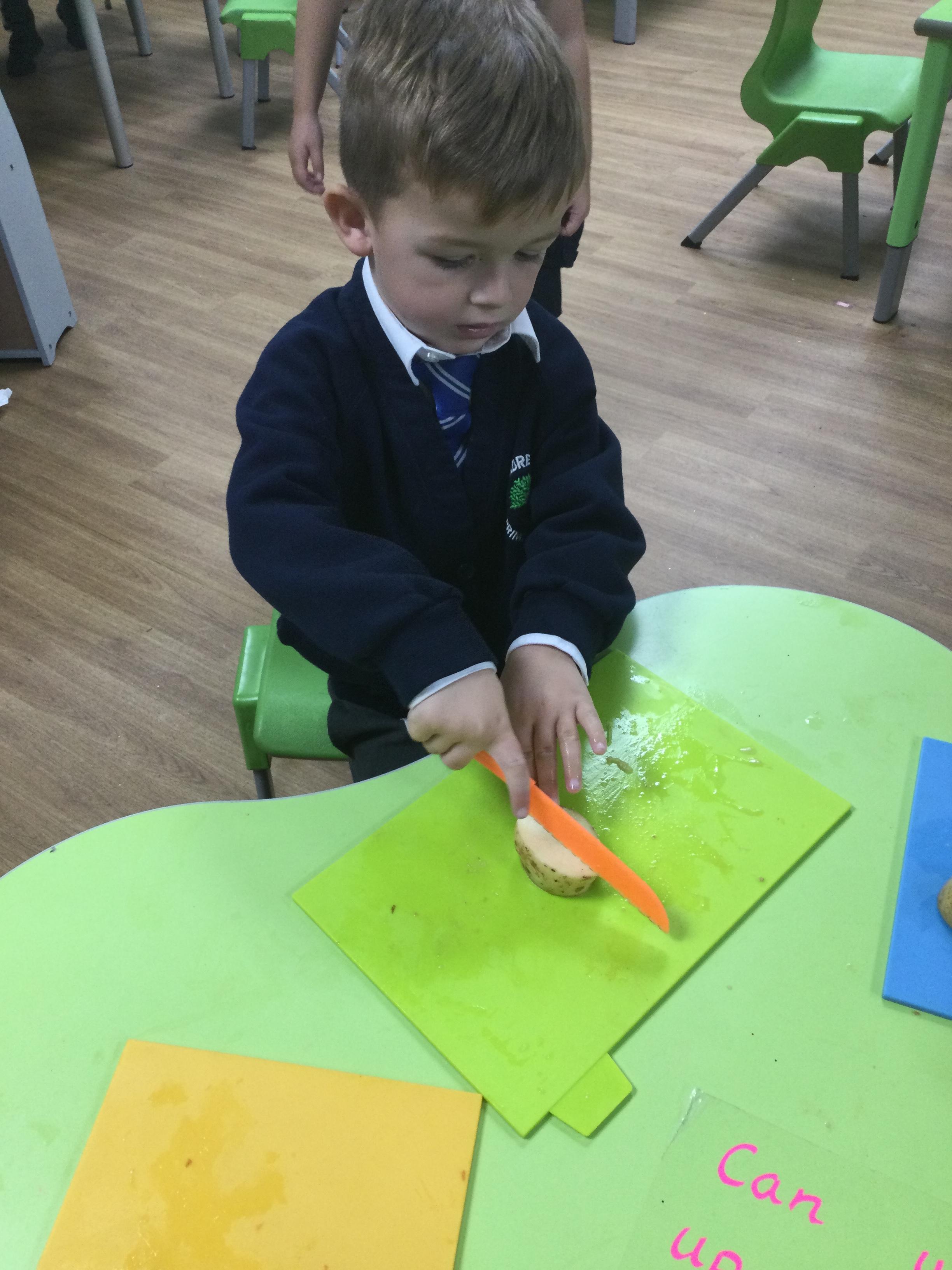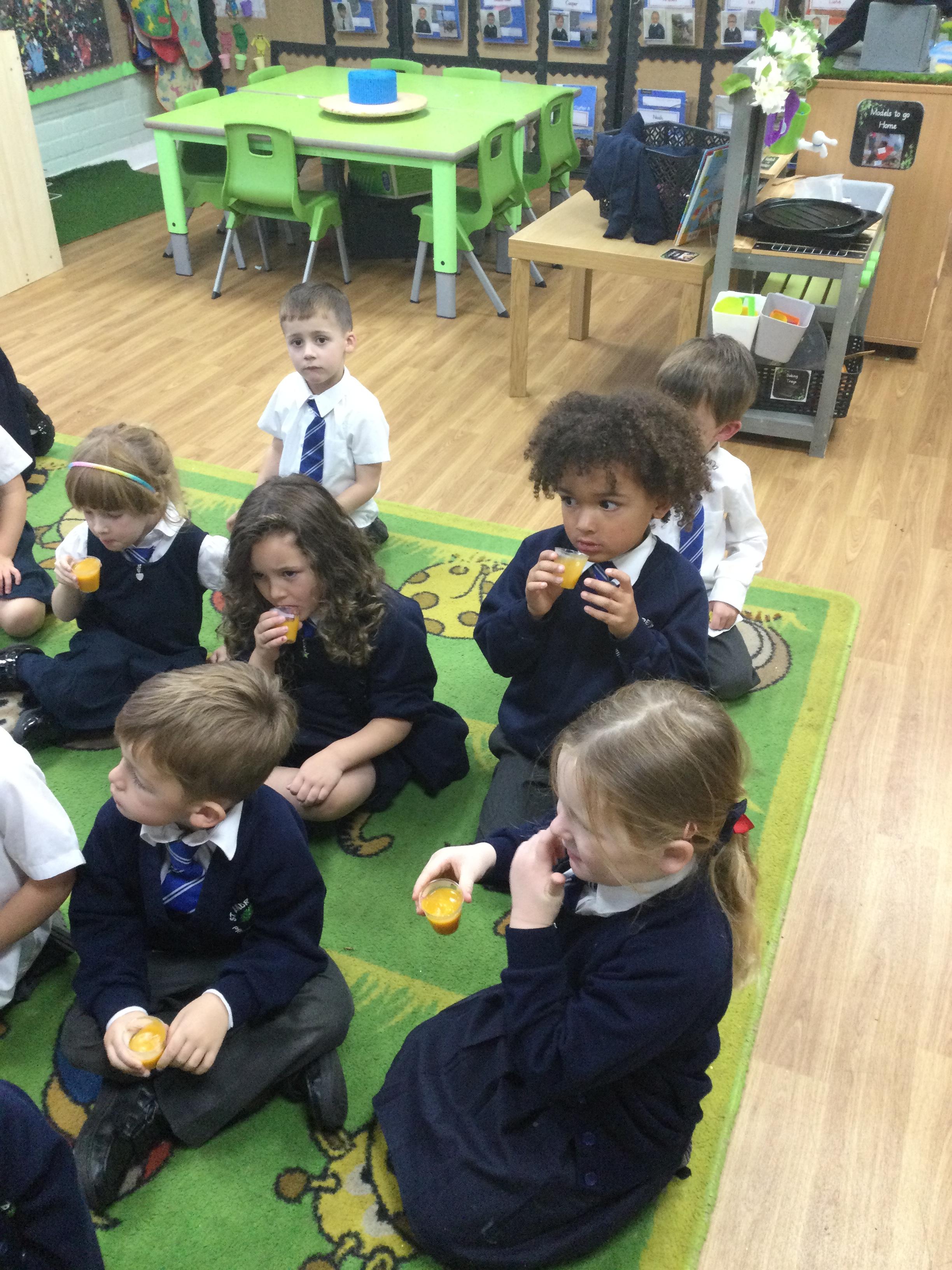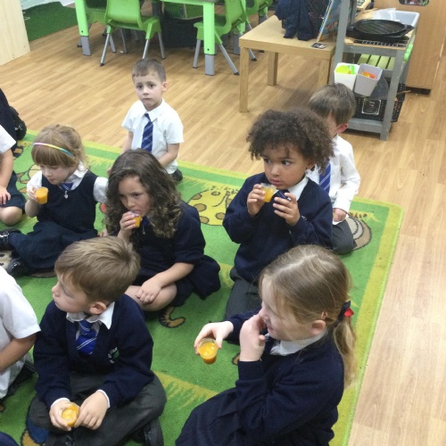 This half term we have been learning about Harvest. We have talked about the importance of Harvest time and where food comes from. We talked about the different kinds of fruits and vegetables we like, where they grow and the different types of foods we like that contain fruits and vegetables.
