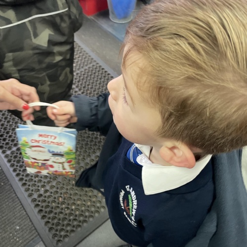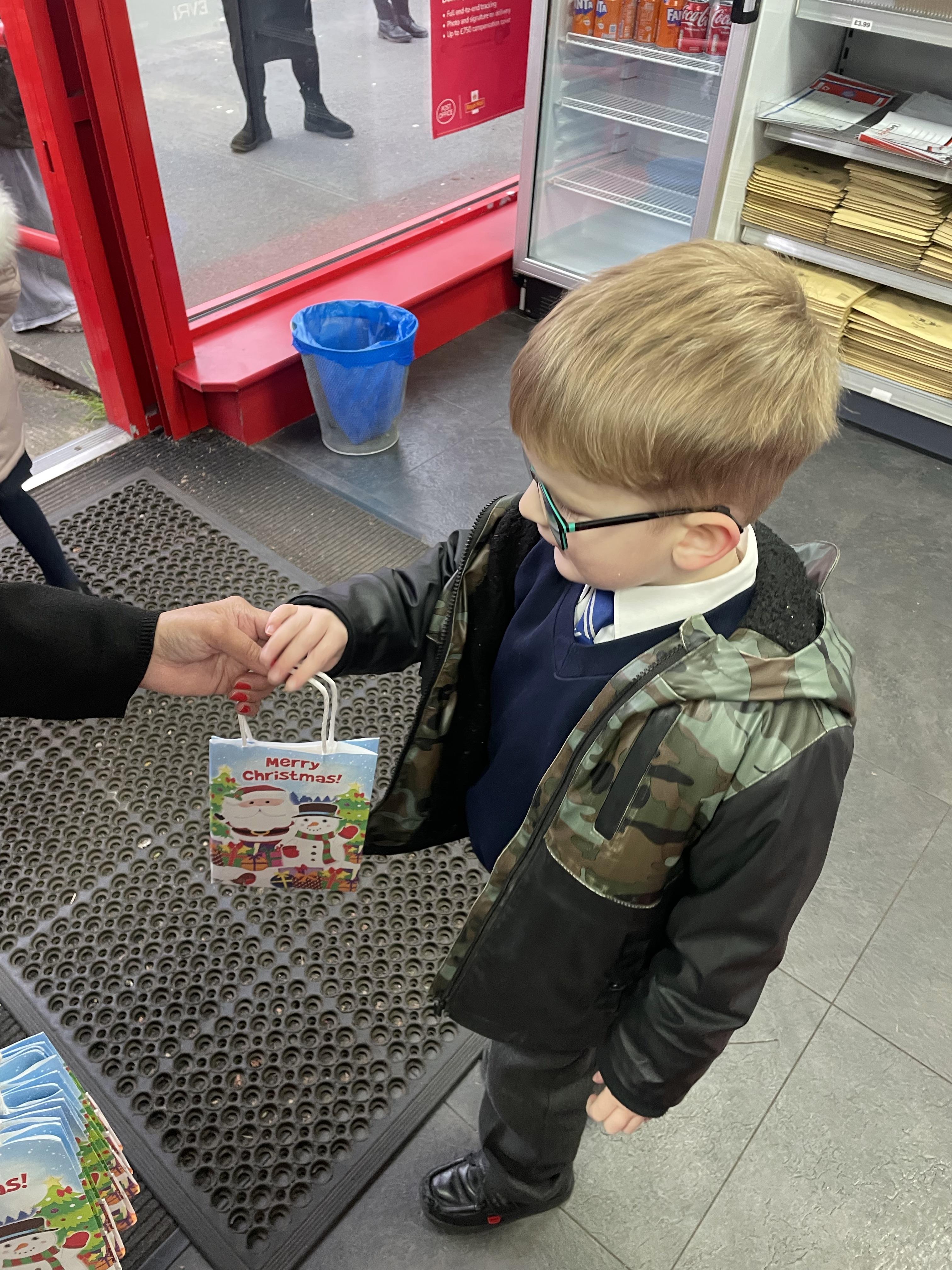 The following week, with the help of our parents, we went to our local Post Office and posted our letters to Santa. Afterwards, we were very lucky to get a special gift from the Post Office lady.