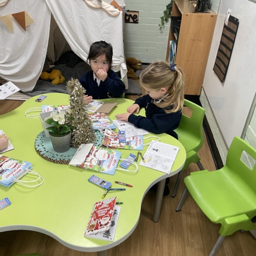 This term we have been reading and listening to the story 'The Jolly Christmas Postman'. We have loved this story and have been very busy writing our own letters to Santa. We have also written Santa's address onto some special golden envelopes and independently folded up our letters for Santa and placed them inside.