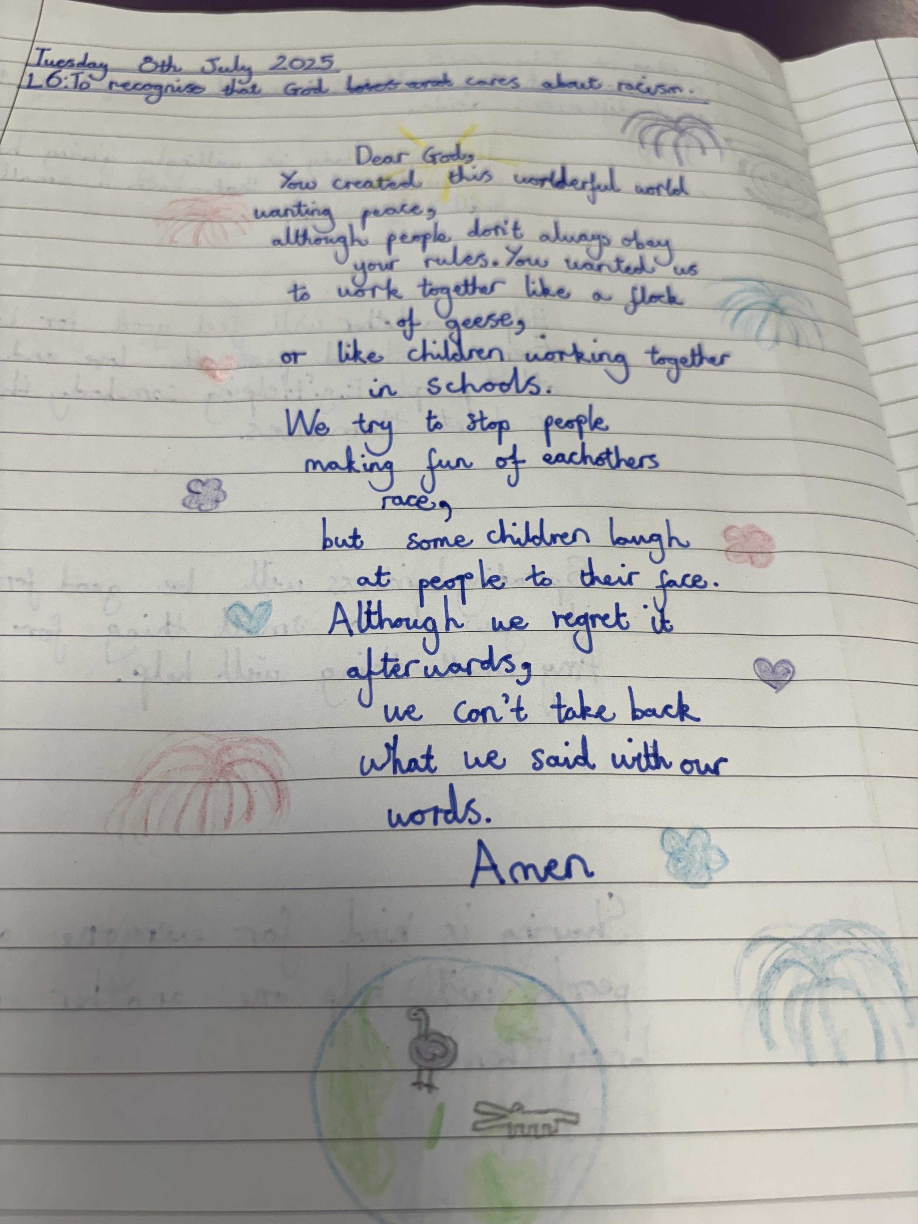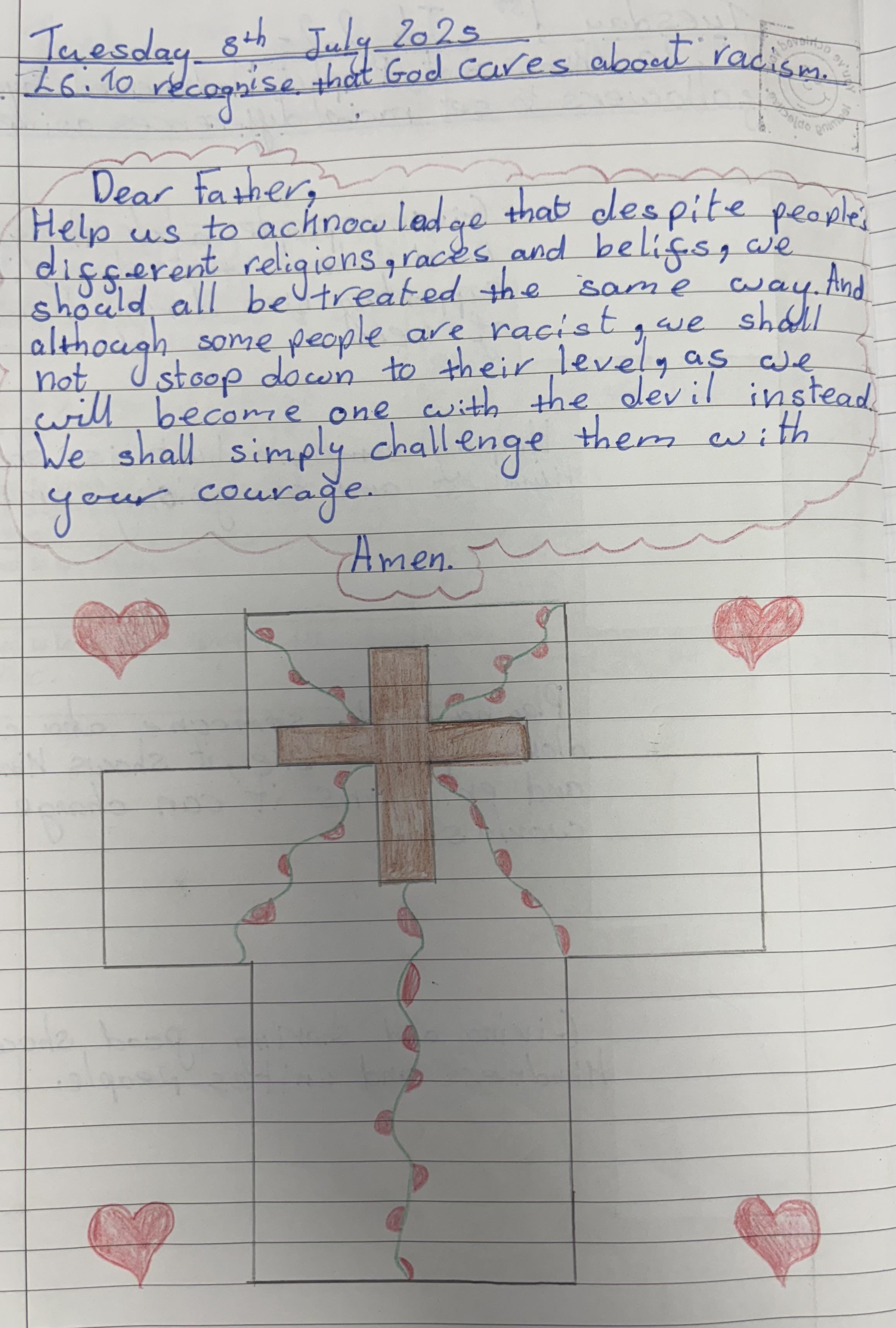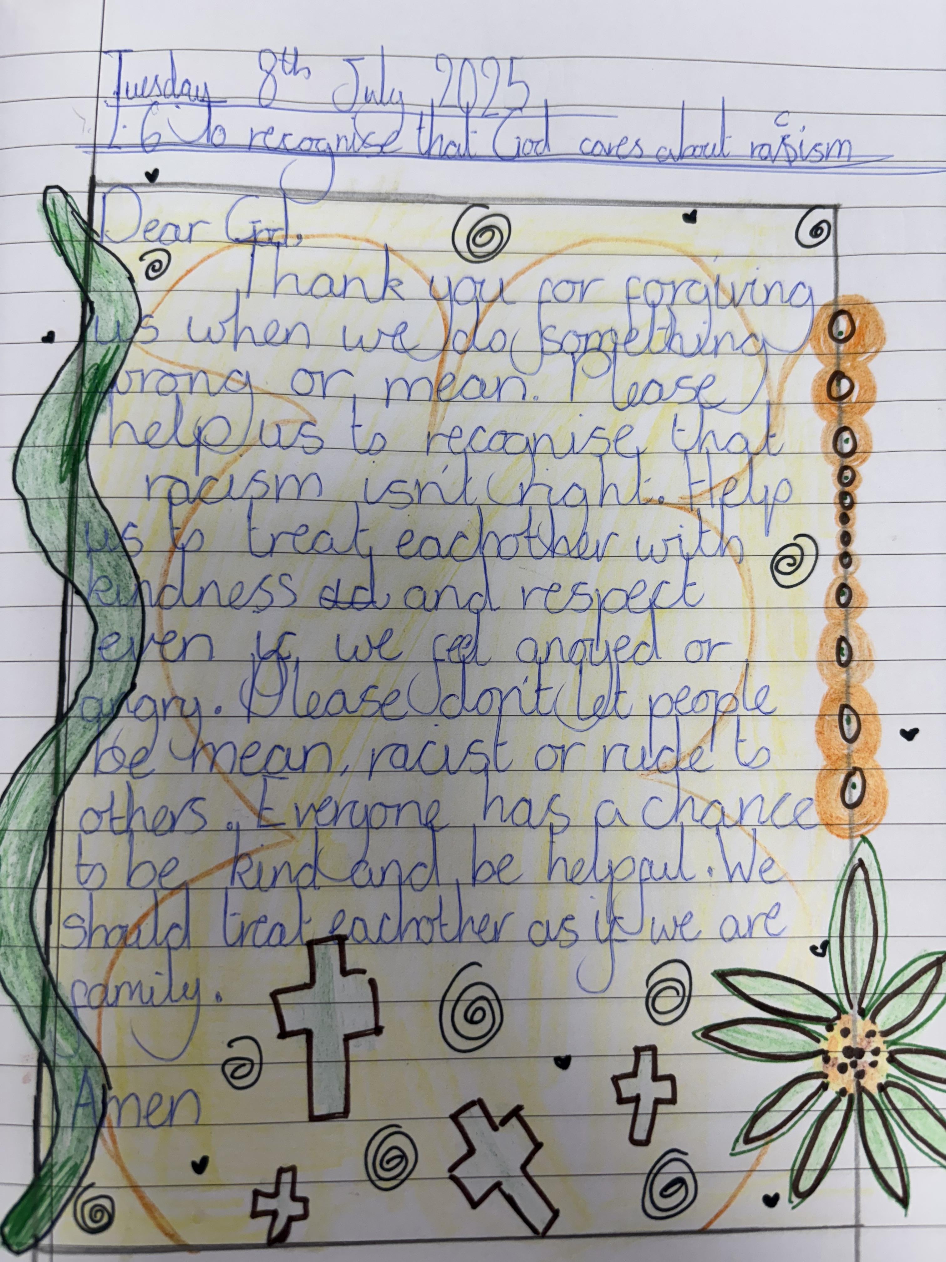 Year 5 wrote some thoughtful prayers in RE.
