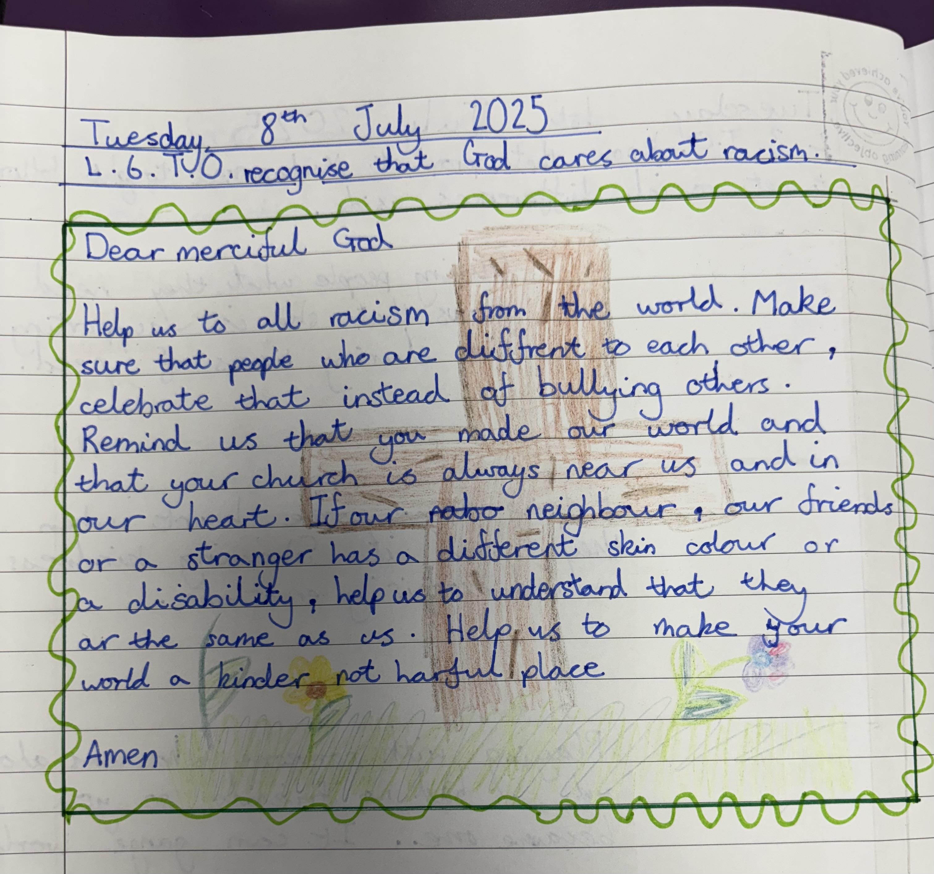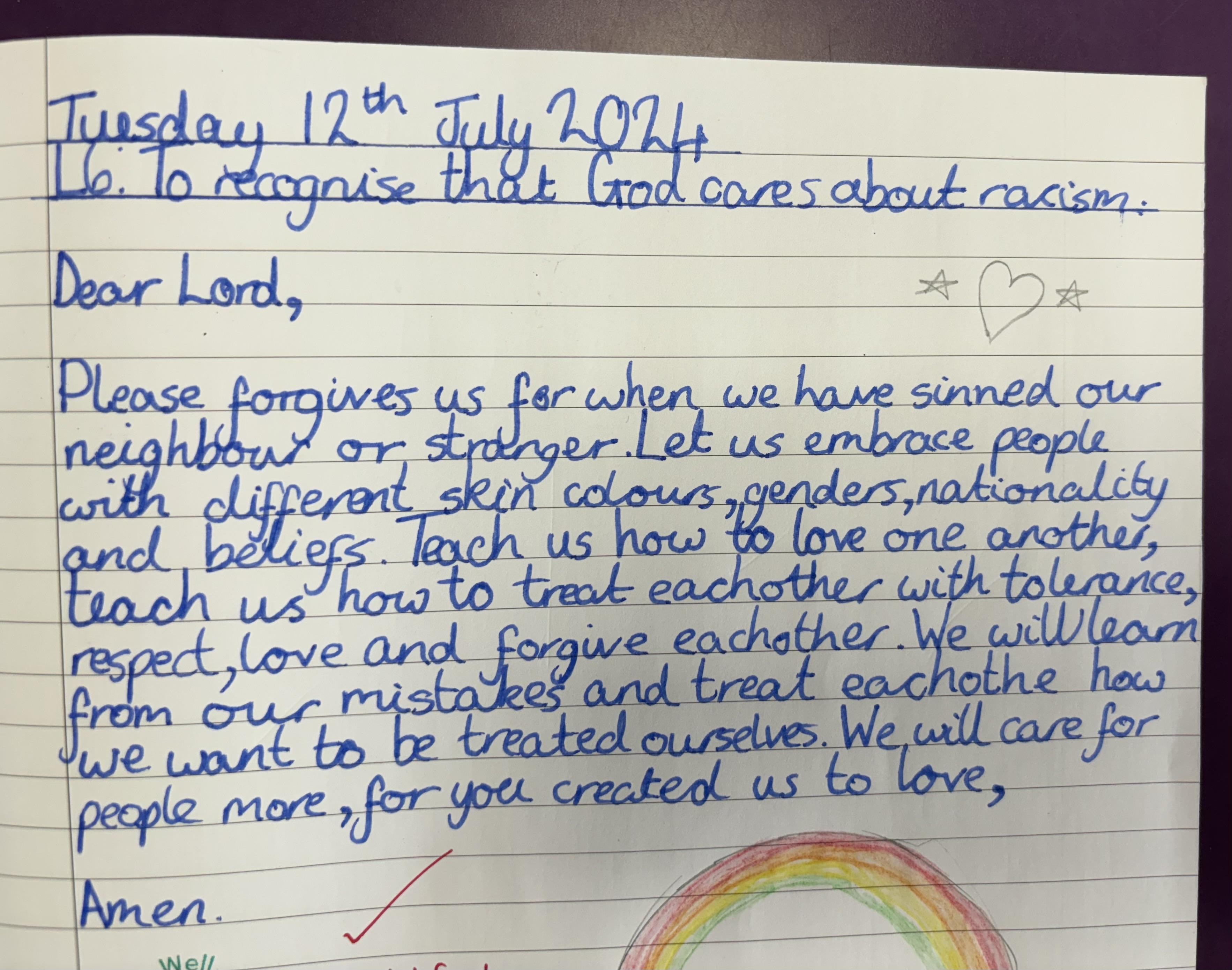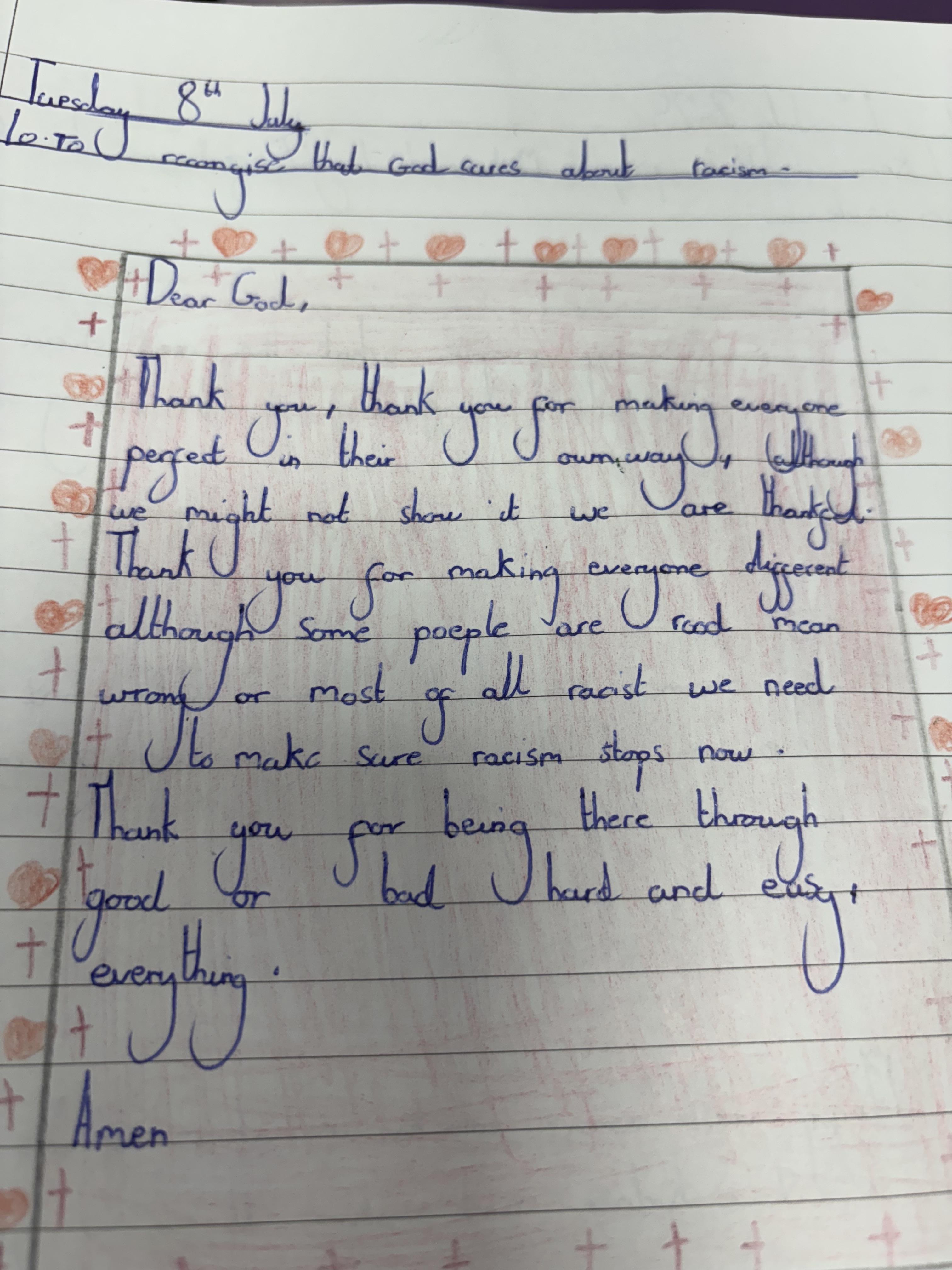 Year 5 wrote some thoughtful prayers in RE.