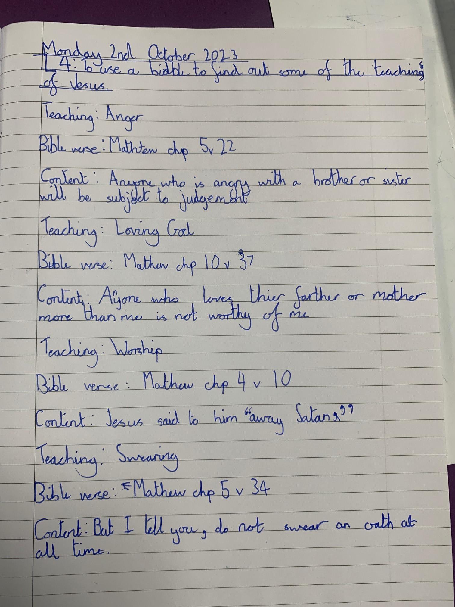 Year 5 enjoyed using bibles to learn more about the teachings of Jesus and to find out how they link to our school Christian values.