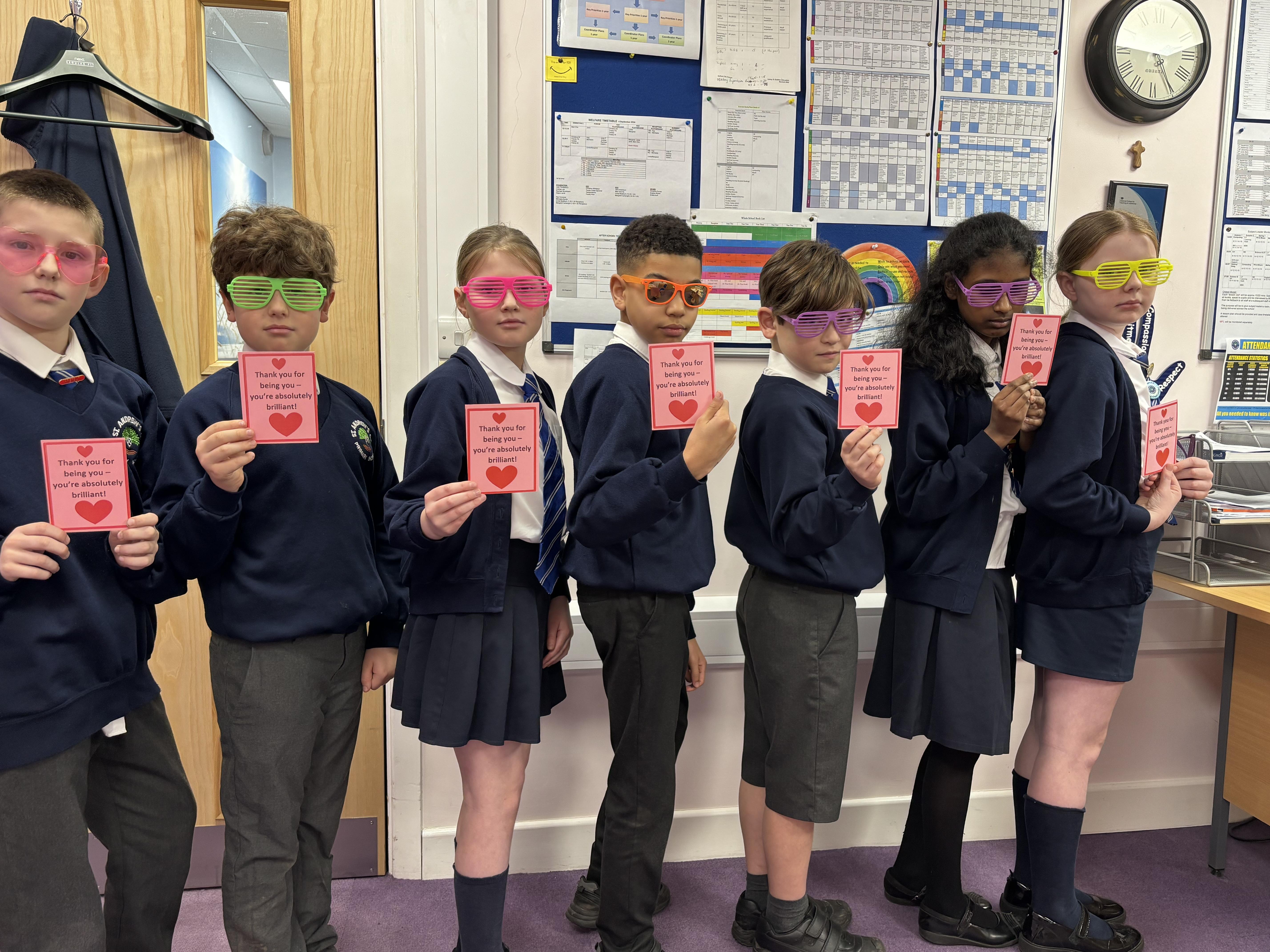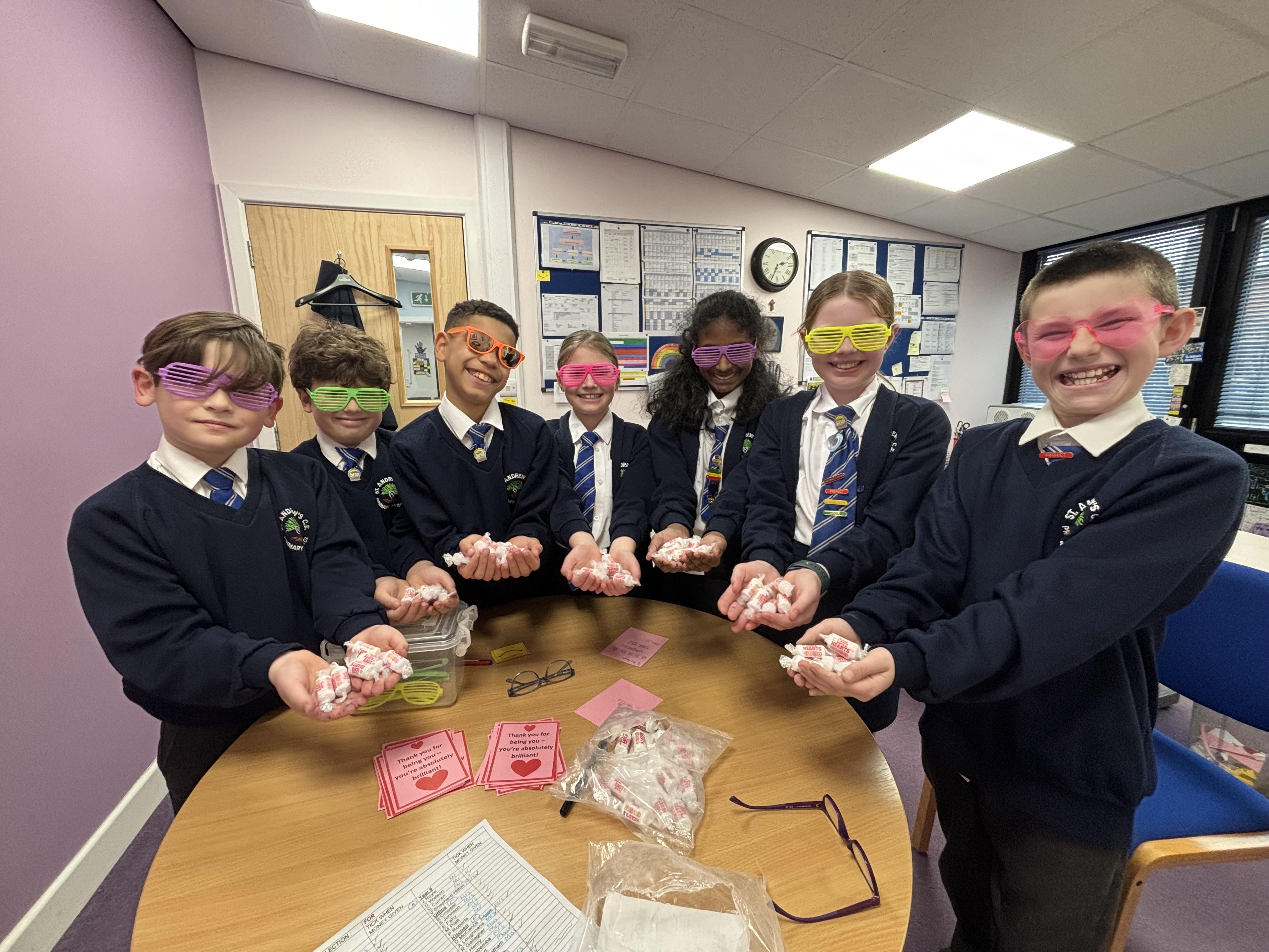 Our spiritual leaders/secret agents of kindness spreading Valen-Kinds across school!