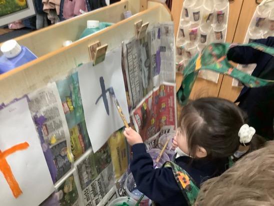 Nursery enjoyed learning about the cross in their Easter RE lessons.
