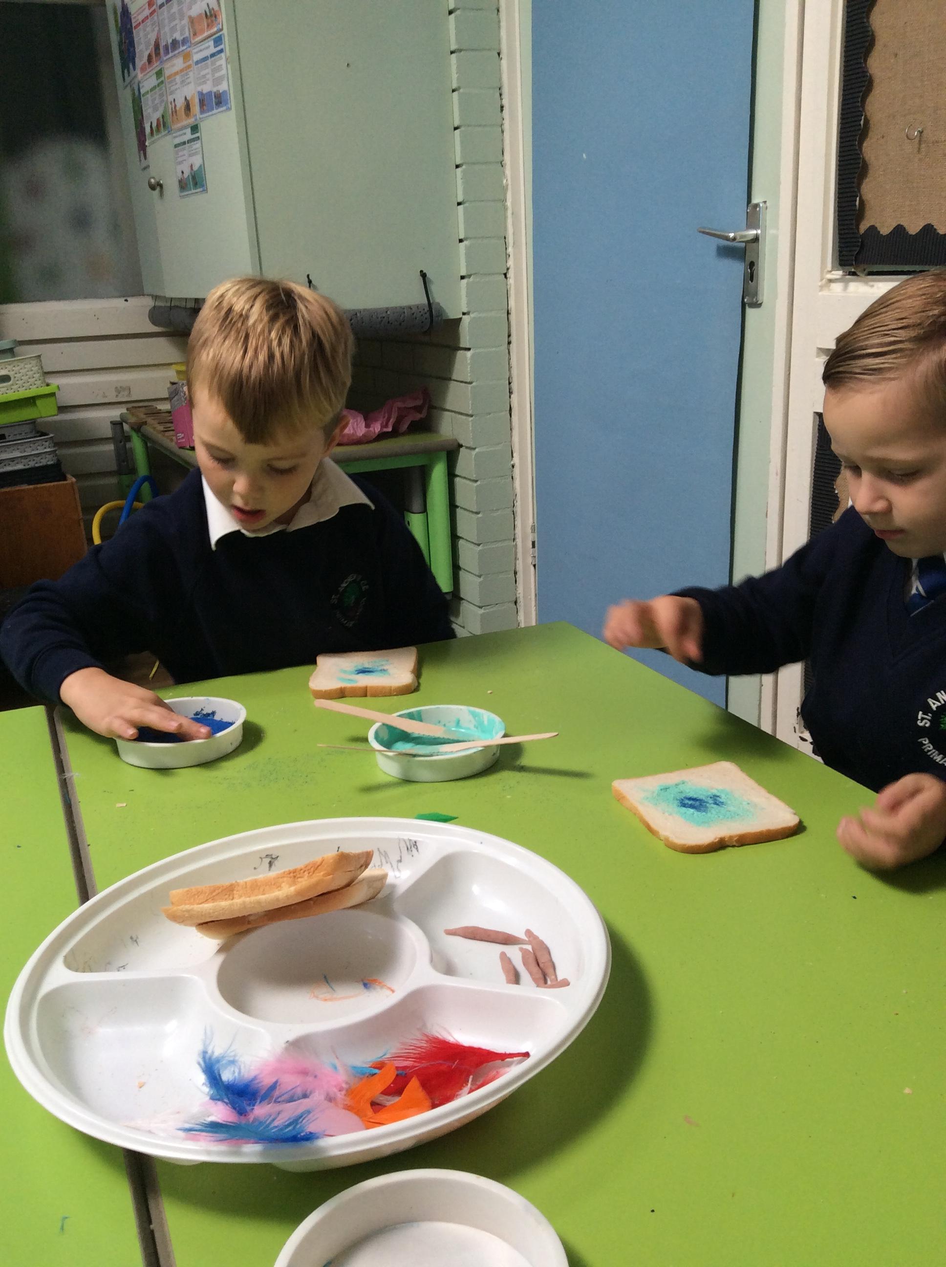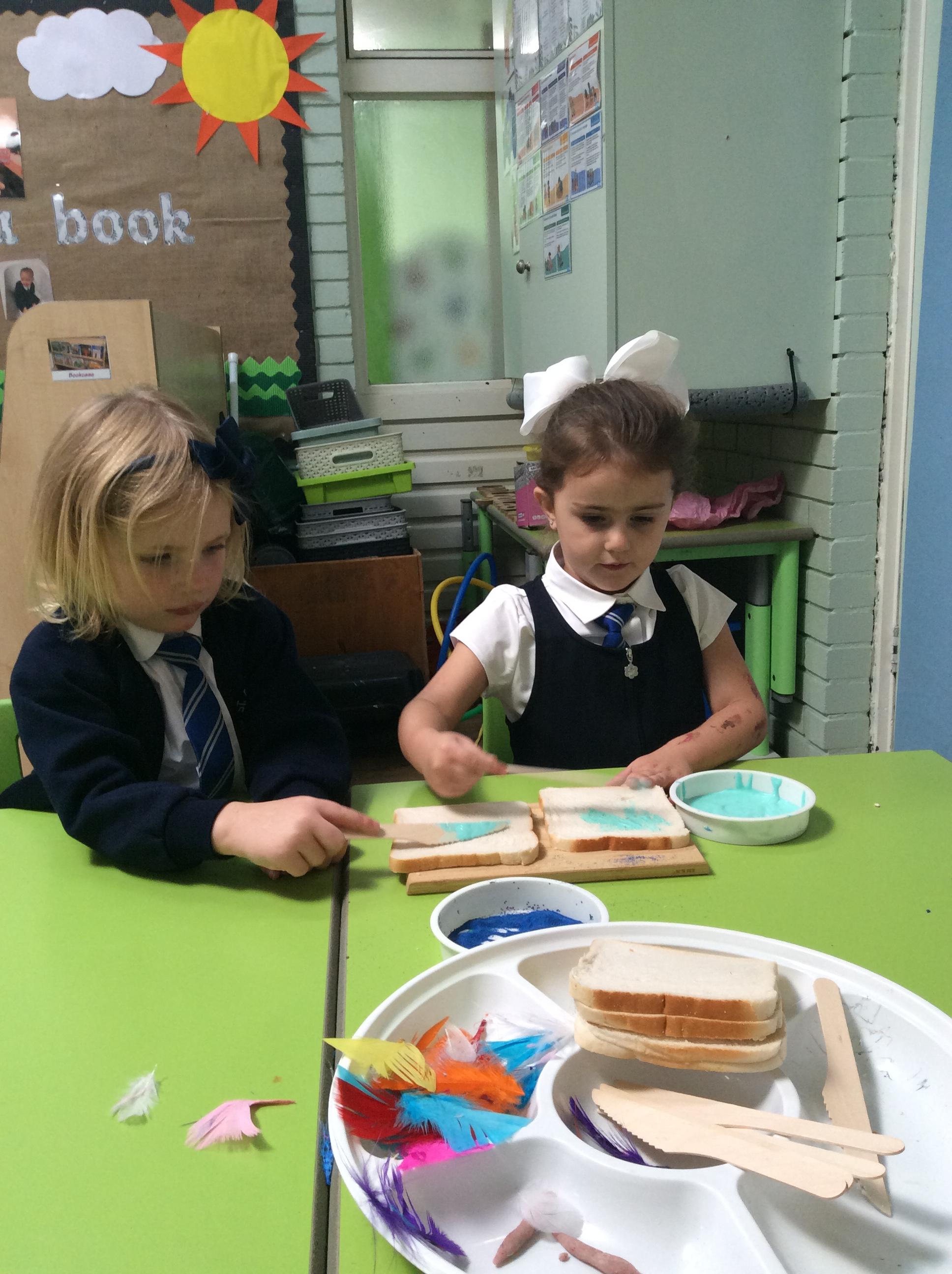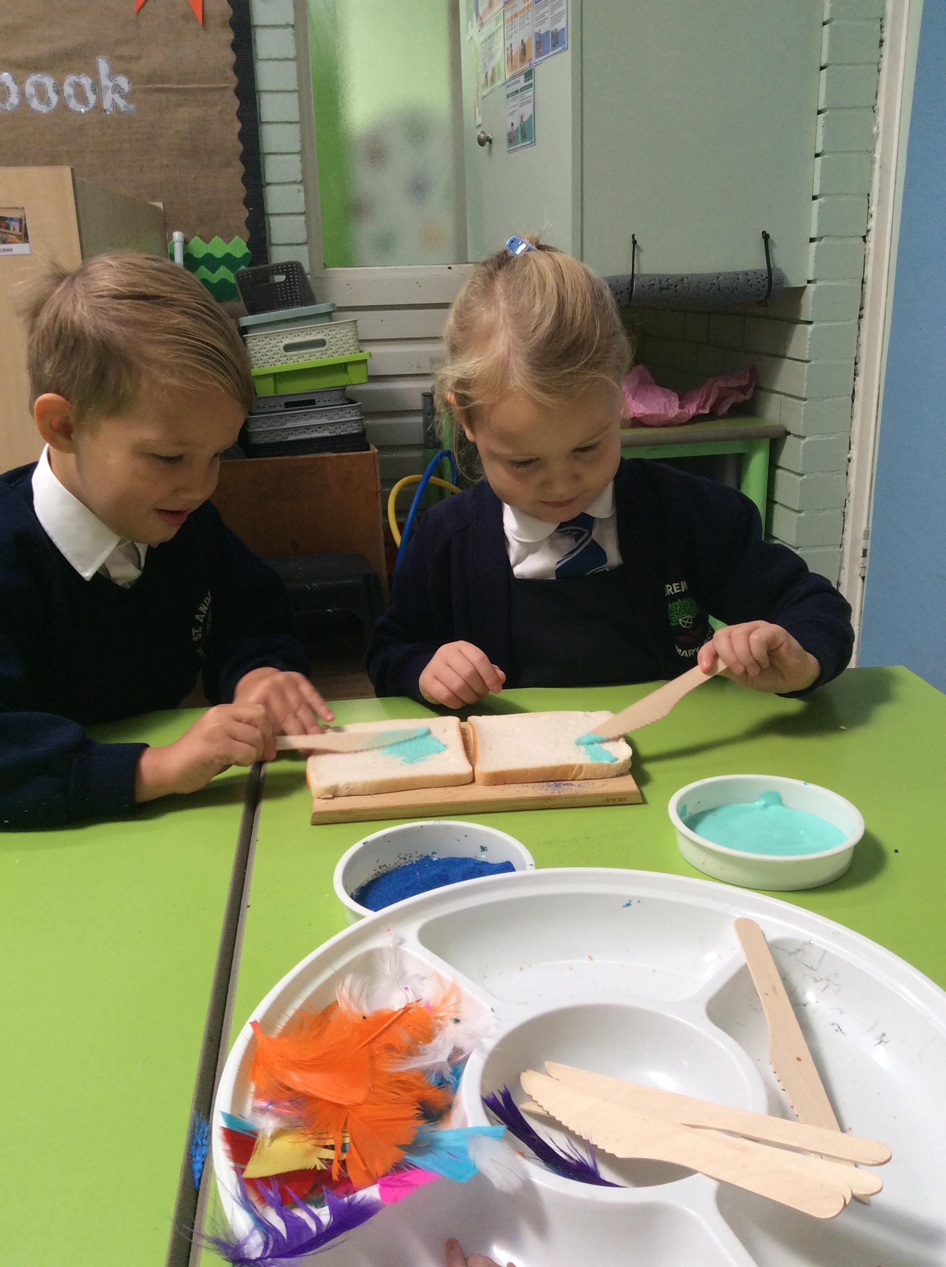 RS have loved making disgusting sandwiches this week! They had mouldy mayonnaise, sand, pigeon feathers and slimy slugs on! Disgusting!