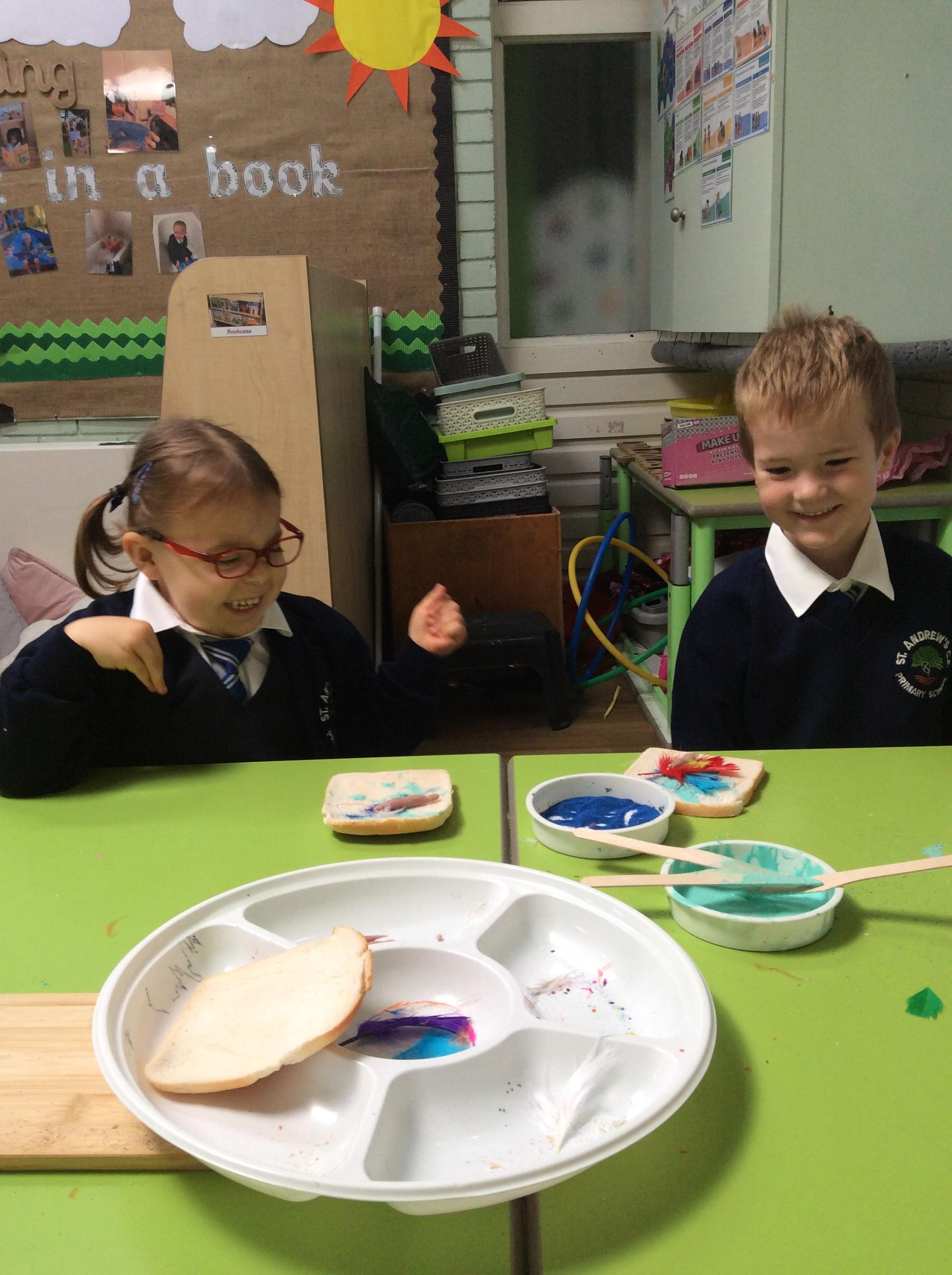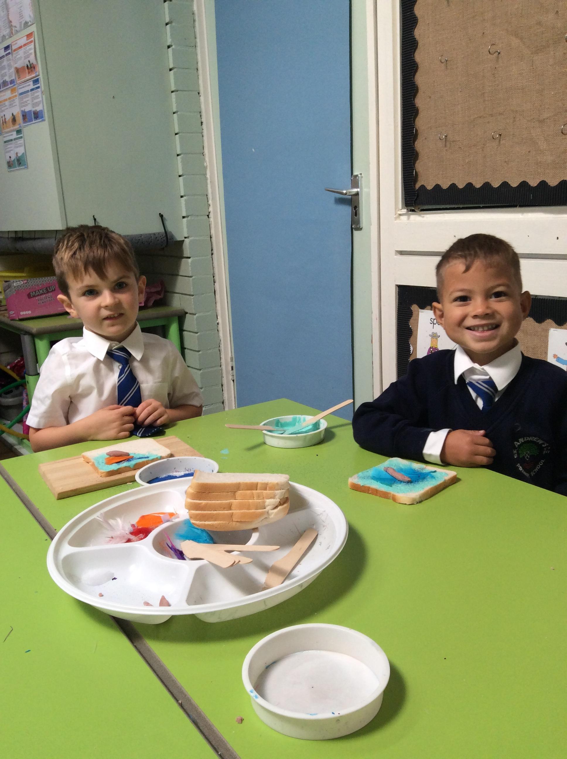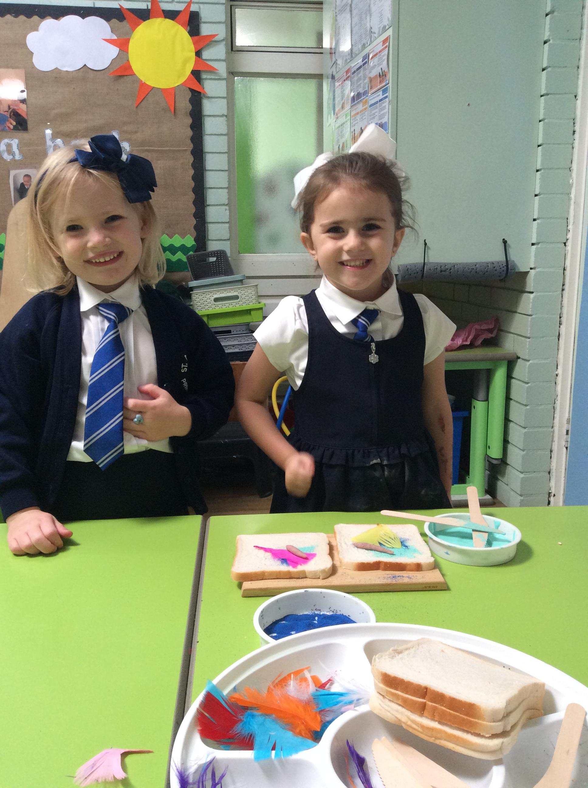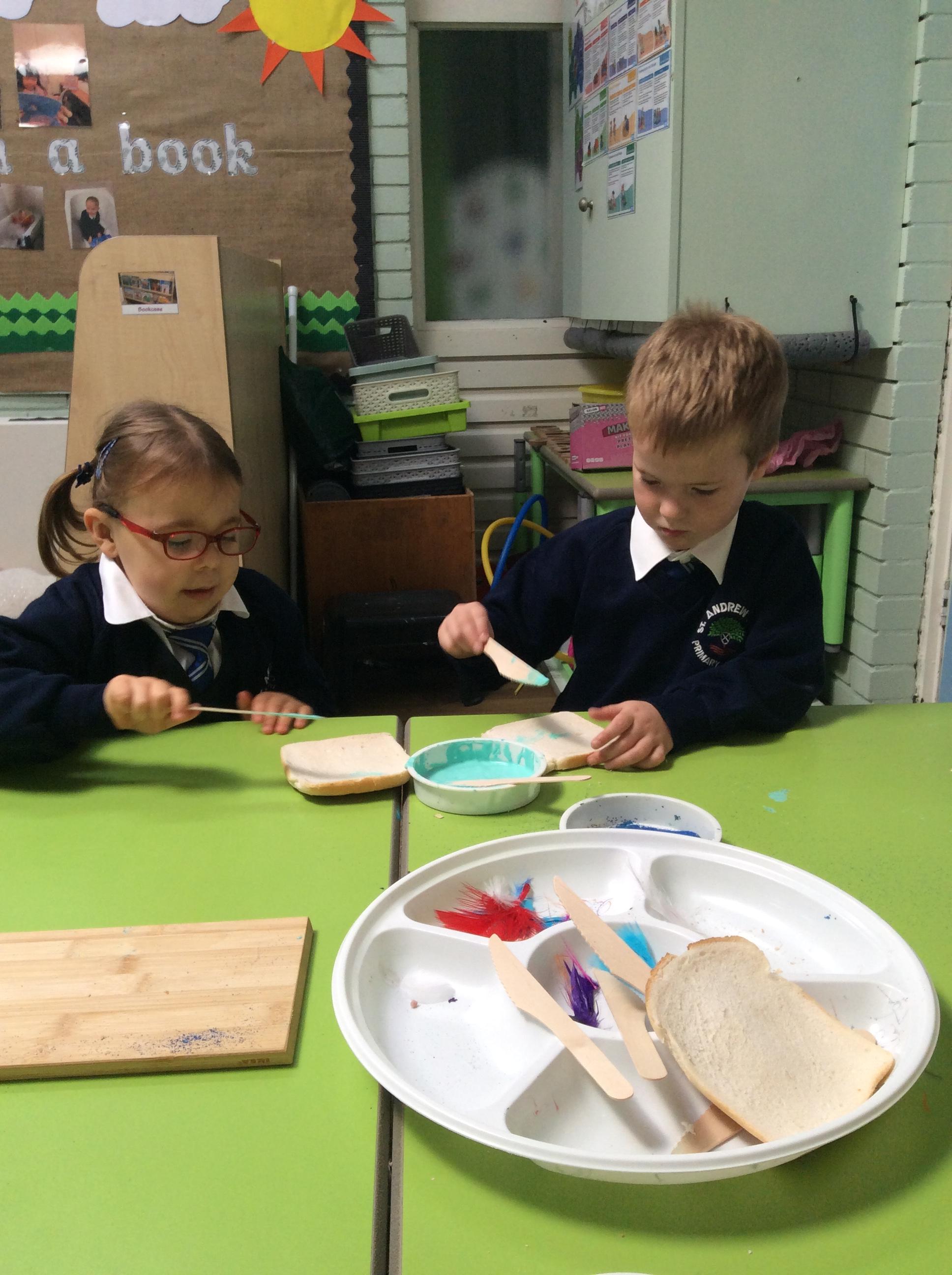 RS have loved making disgusting sandwiches this week! They had mouldy mayonnaise, sand, pigeon feathers and slimy slugs on! Disgusting!