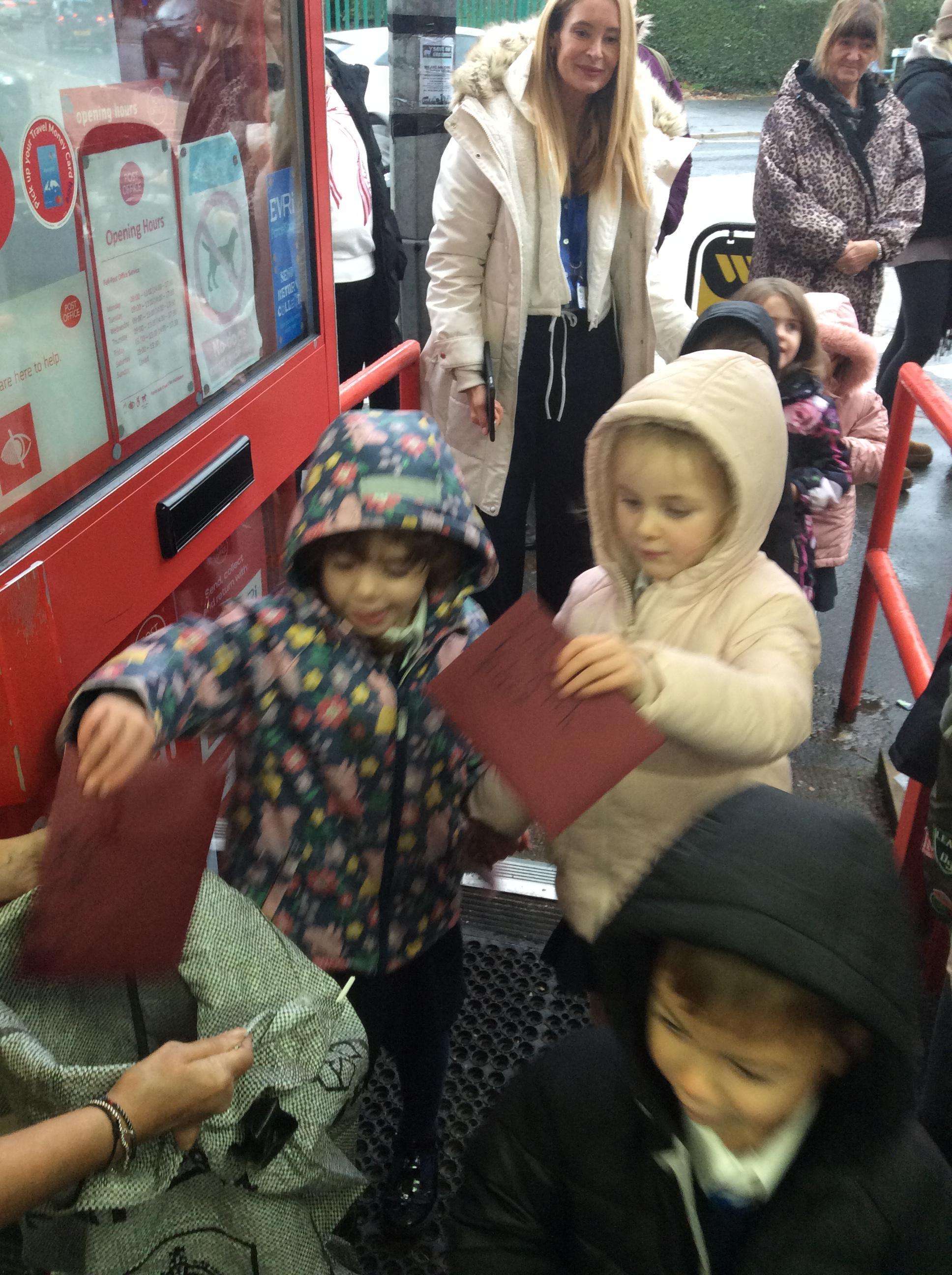 We walked to the post office to send our special letters to Santa Claus. It was so exciting - we had to put our letters into a big sack. Santa even sent us replies from the North Pole!