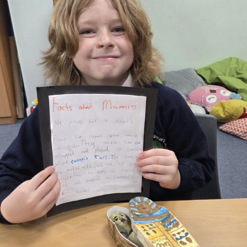 Year 3 have settled in really well to their new classroom and key stage! They have been learning about adjectives and prepositions in English, place value in maths, magnets in science and Ancient Egypt in history! We will be adding some photos of their work over the next few weeks!